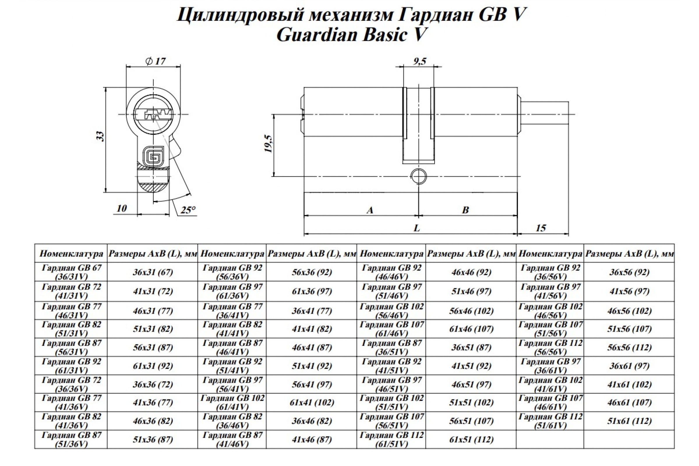 Цилиндровый механизм ГАРДИАН GB 112 61/51V Ni 5кл 28142