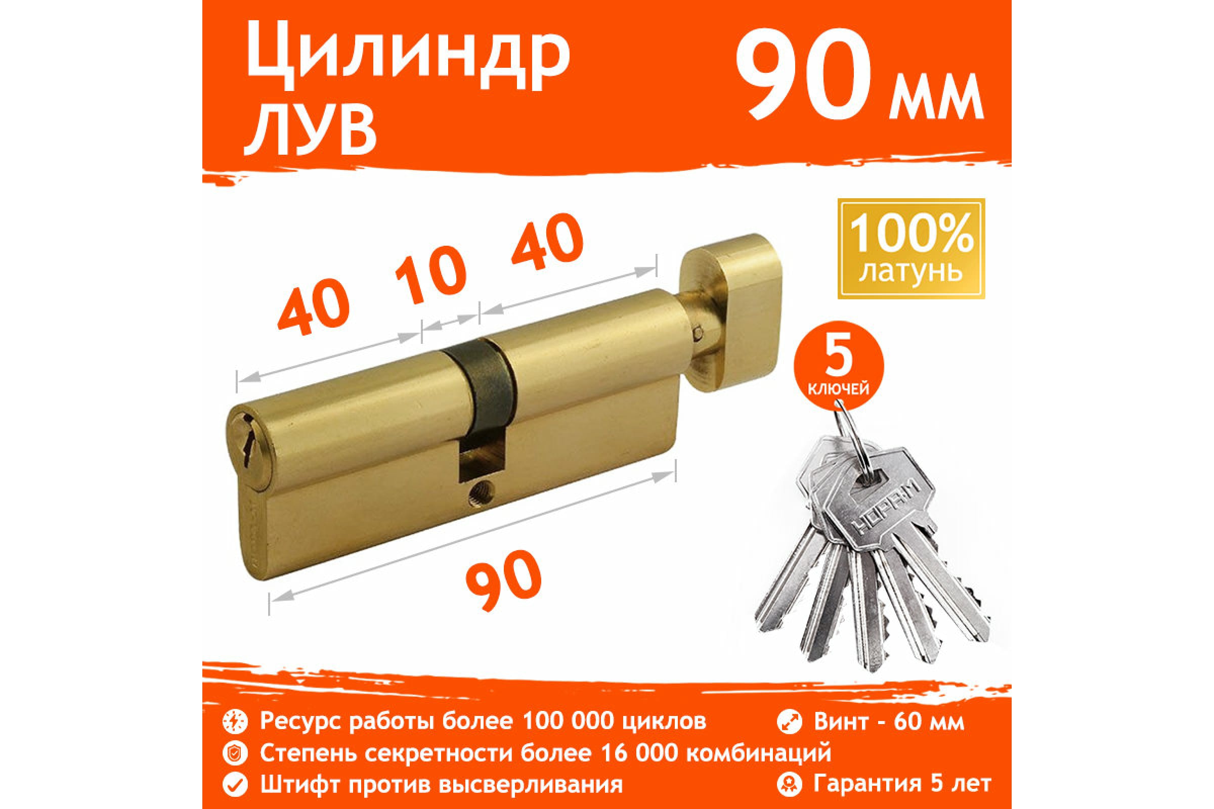 Цилиндровый механизм НОРА-М ЛУВ-90 45-45 латунь Х 6656