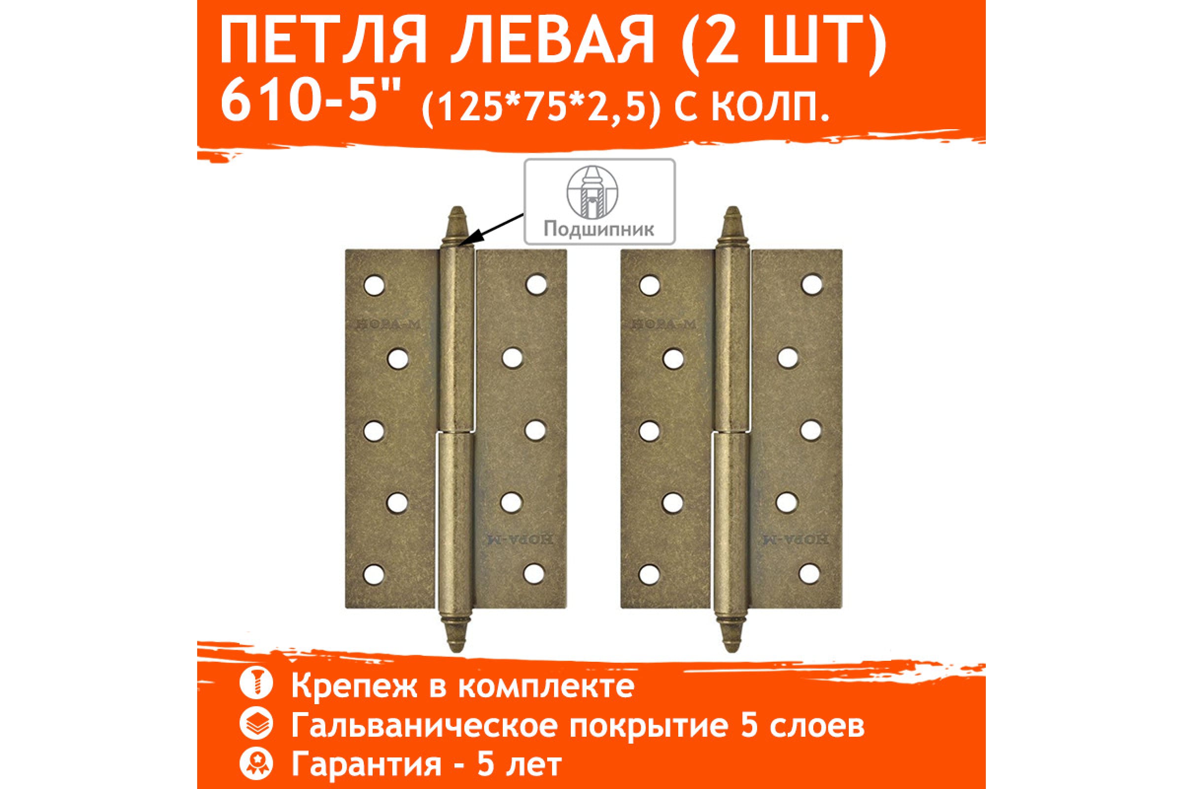 Петля НОРА-М 610-5" застар.бронза левая 125x75x2.5 5462