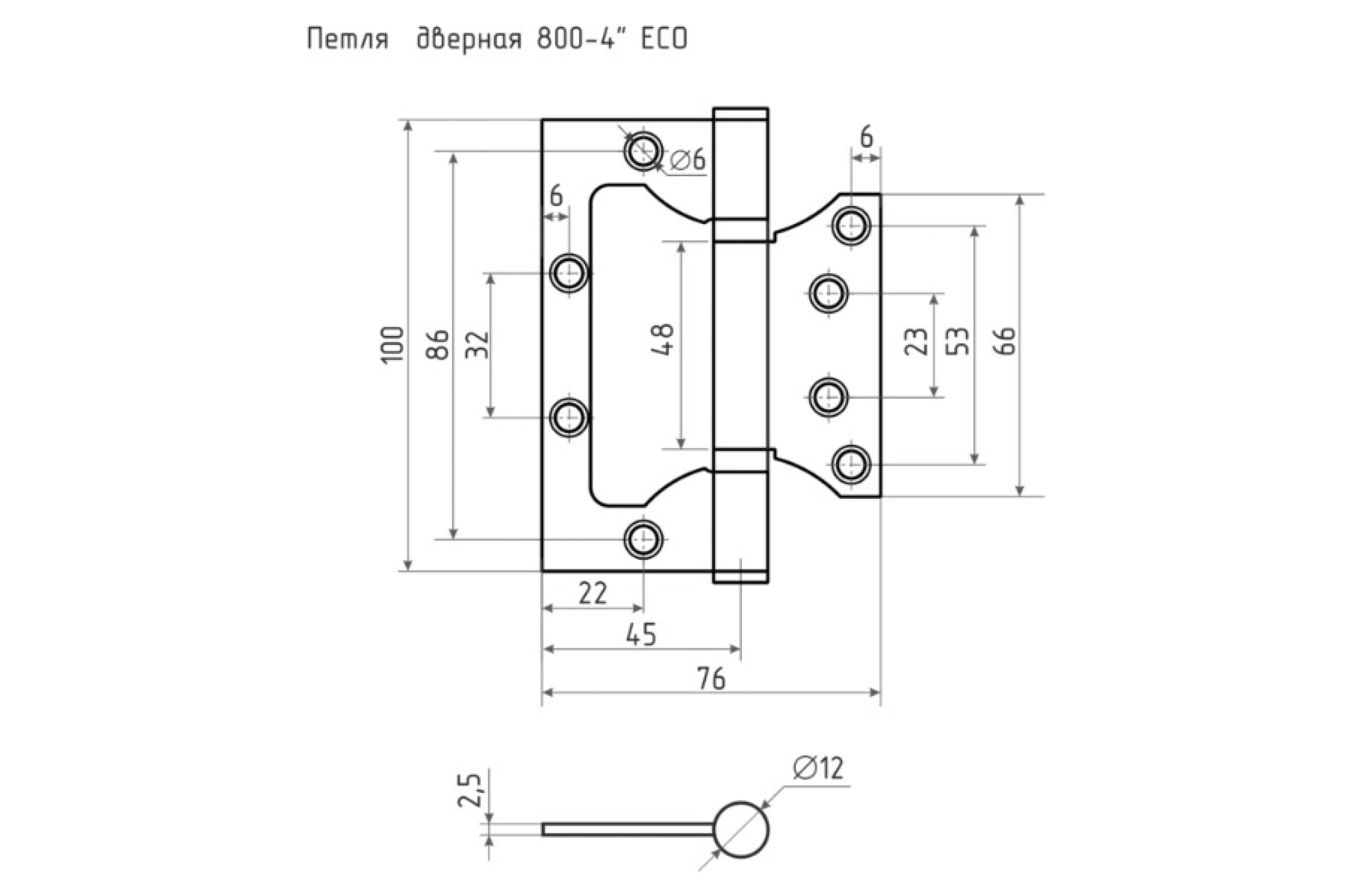 Петля НОРА-М накл. ун. 800-4" FHP-ЕСО СP хром.покр. без колп. 100х75х2,5 15526