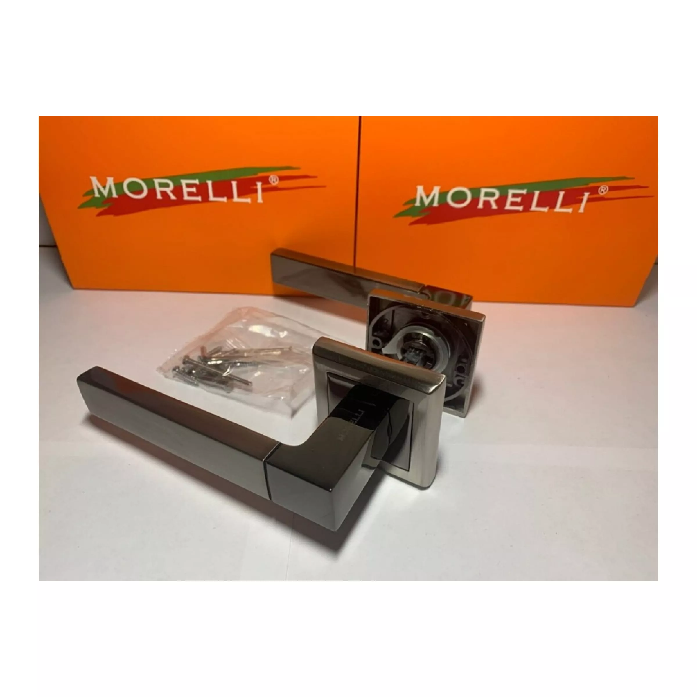Дверная ручка MORELLI "Fukoku", цвет-бел. никель/черн. никель MH-28 SN/BN-S 9010558