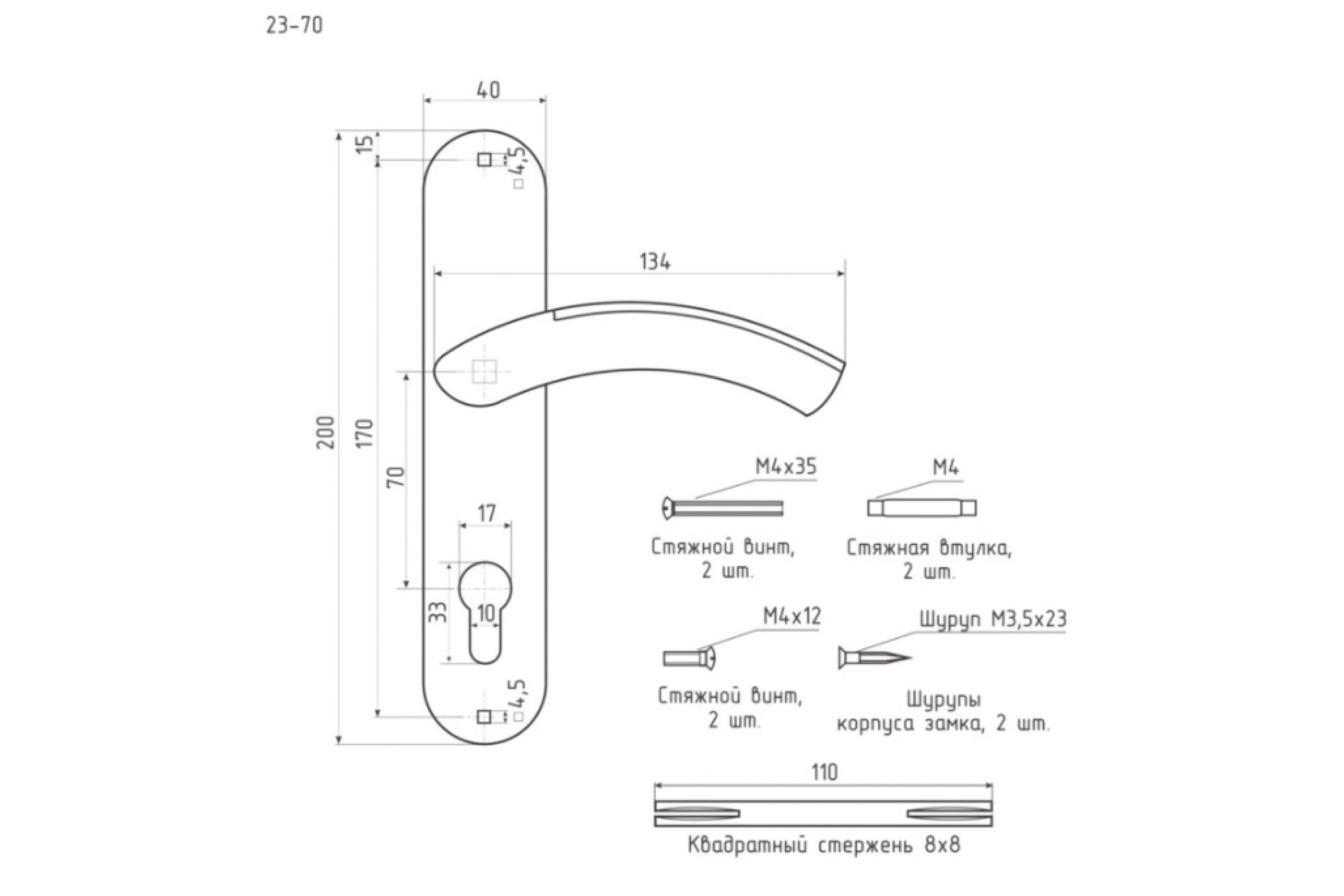 Дверная ручка на планке НОРА-М 23-70 мм мат.хром 8632