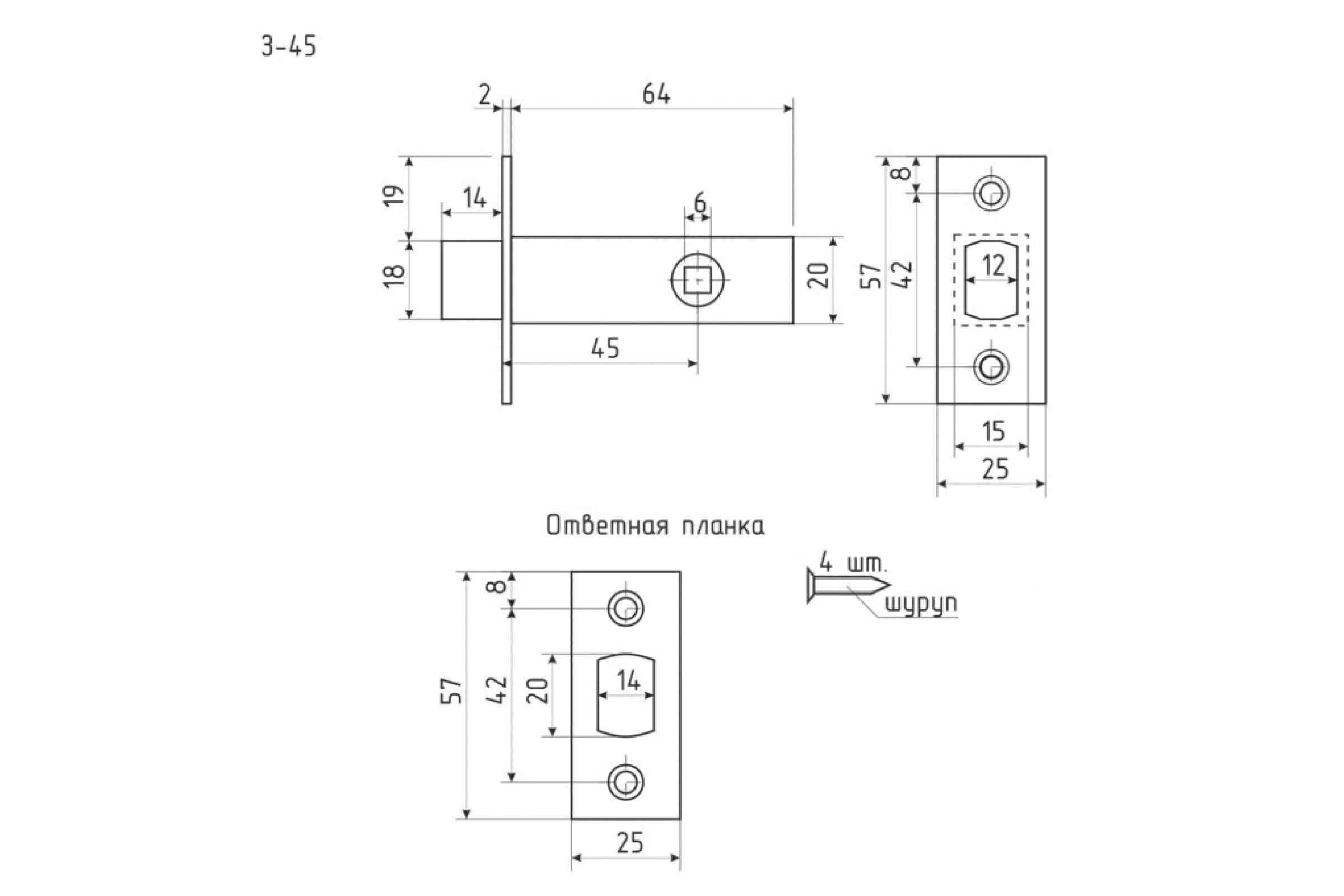 Дверная задвижка НОРА-М З-45 графит 17215