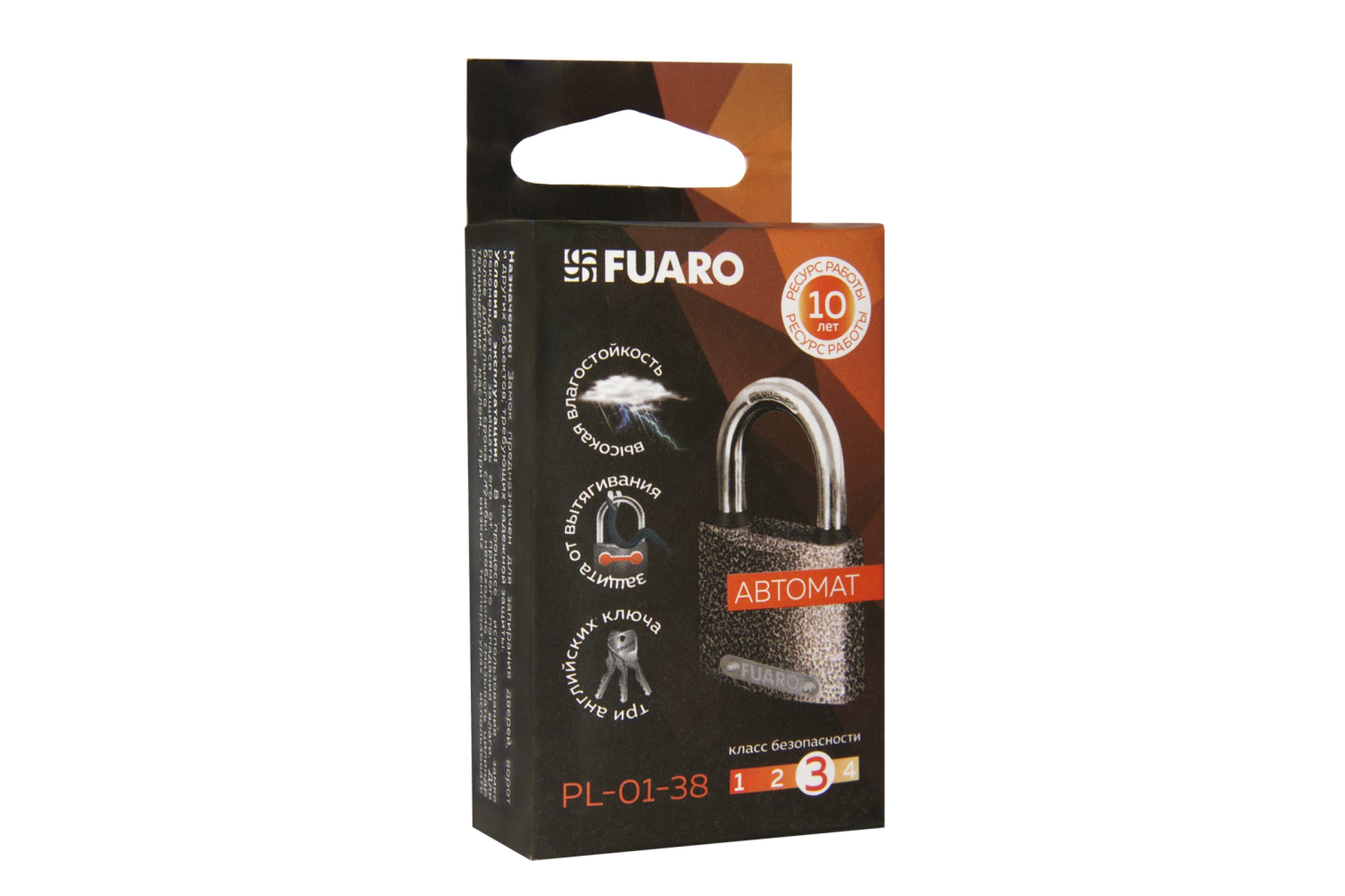 Навесной замок Fuaro PL-01-38 англ. 3 кл., коробка 42263