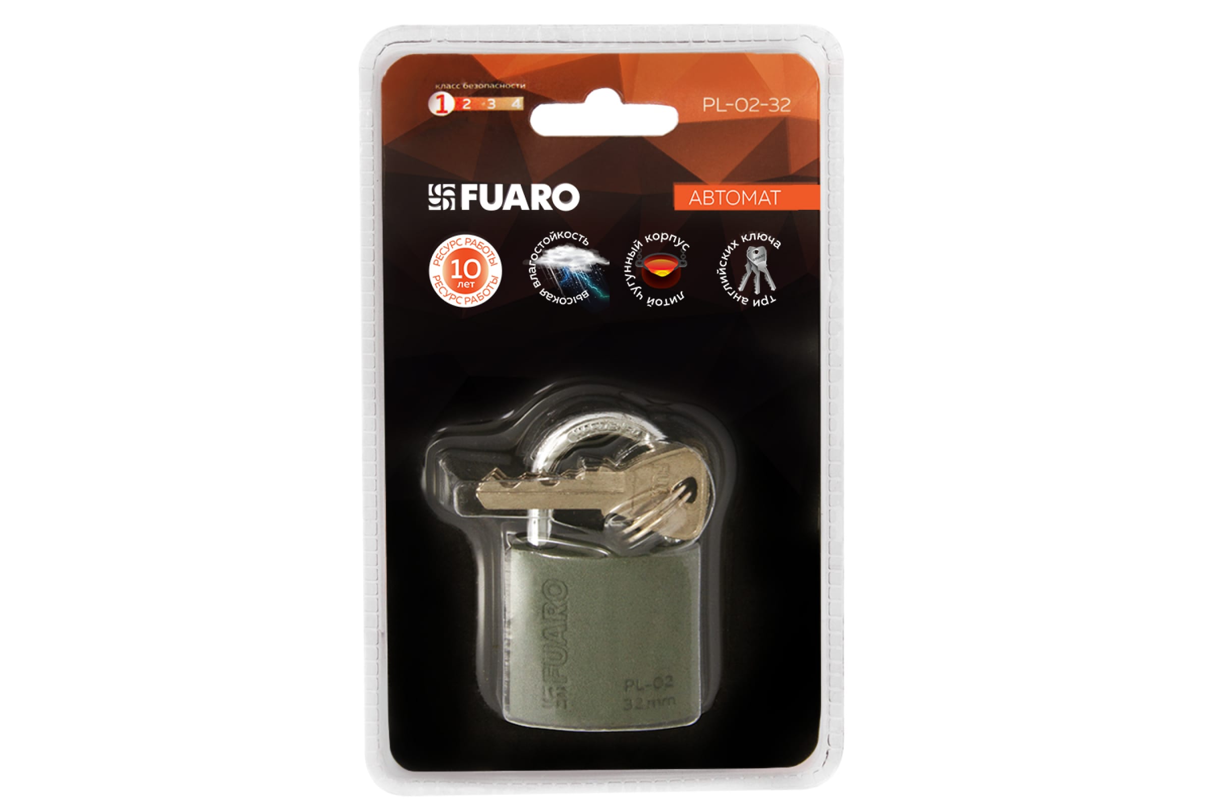 Навесной замок Fuaro PL-02-32 англ. 3 кл., блистер 42289