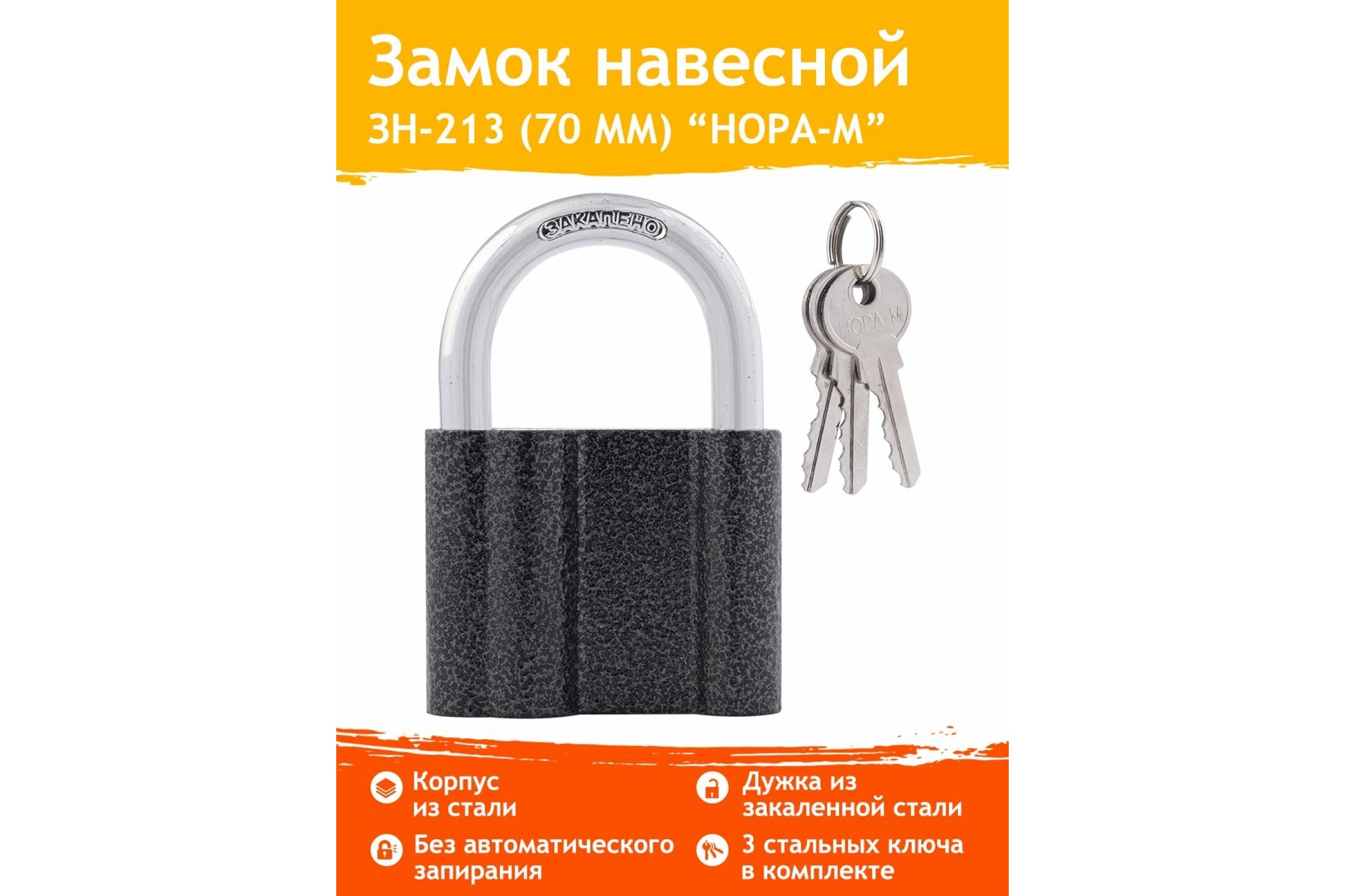 Навесной замок НОРА-М ЗН-213-70 65мм 3кл. 7861