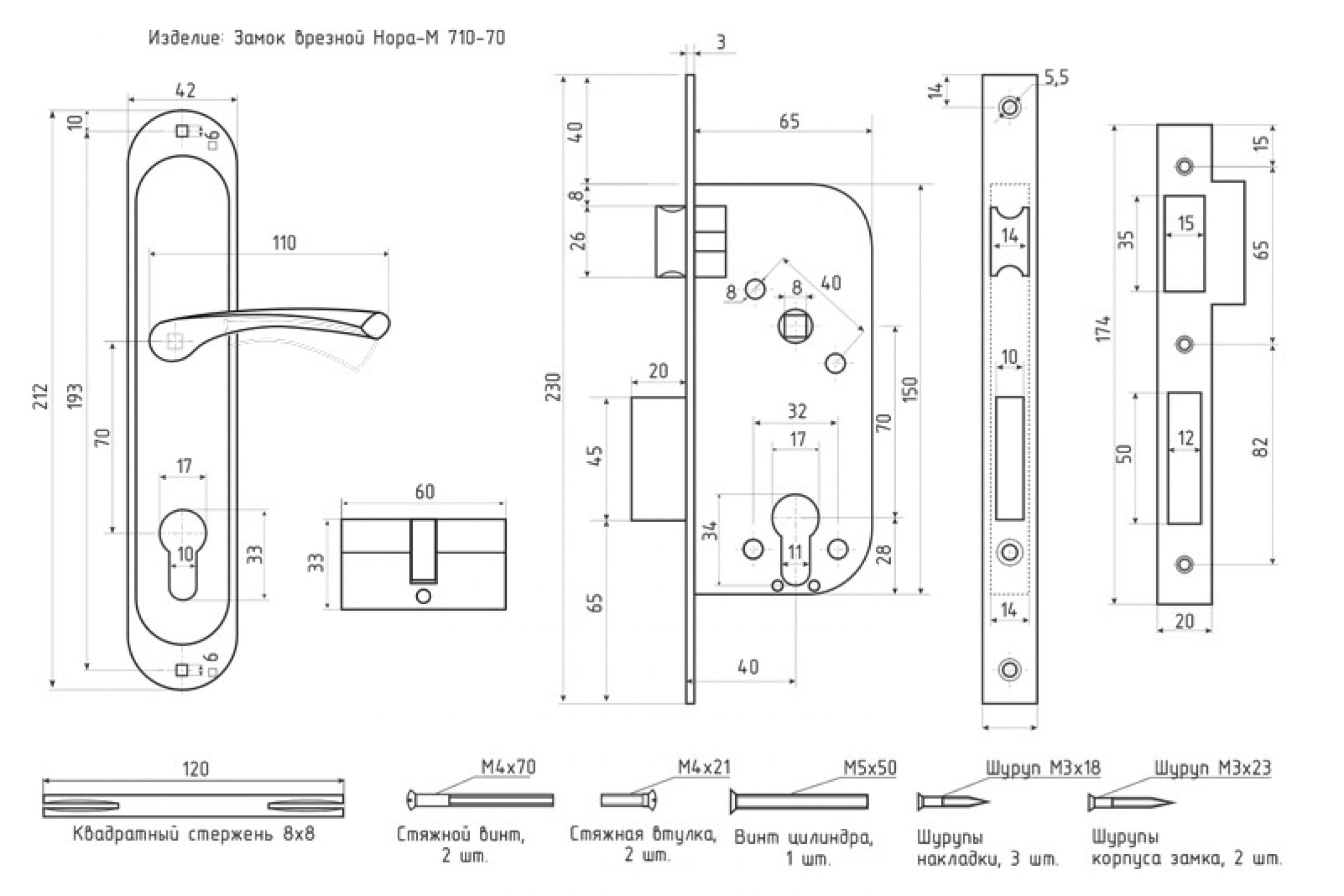 Врезной замок НОРА-М EW 710-70 мм хром 16986