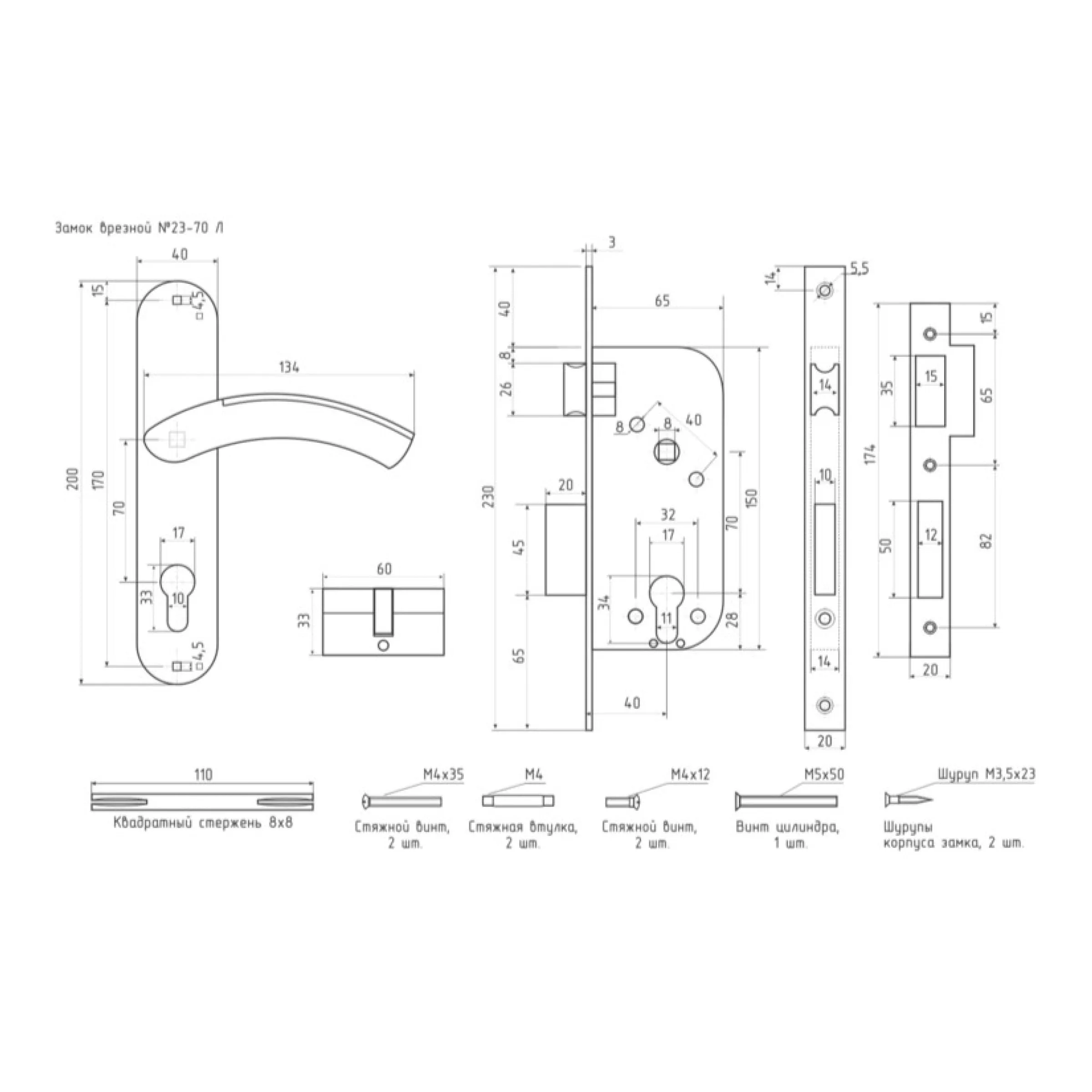 Врезной замок НОРА-М N23-70 Л ст.бронза 11877