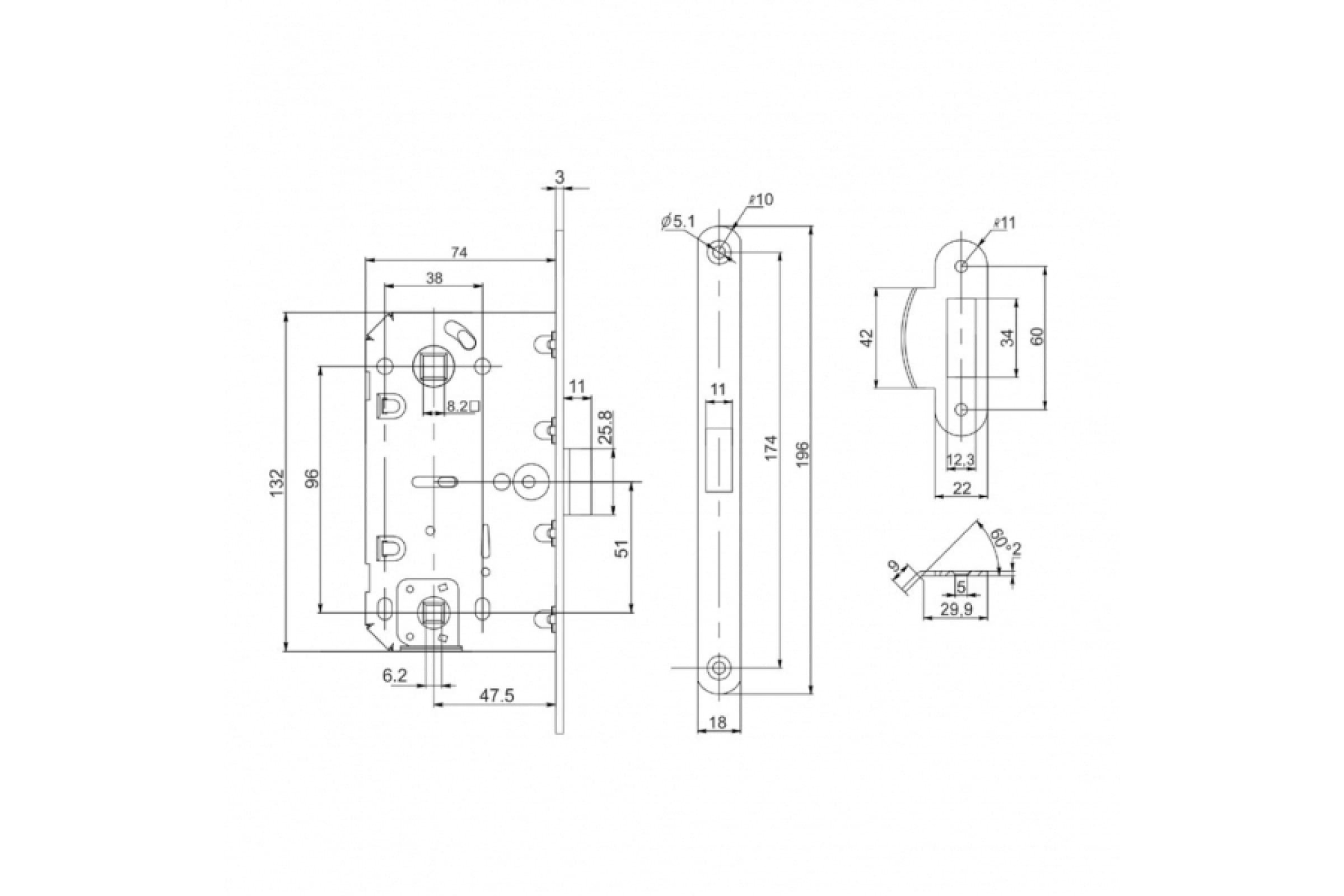 Врезная защелка PUNTO PL96WC-50 BL черный 43297