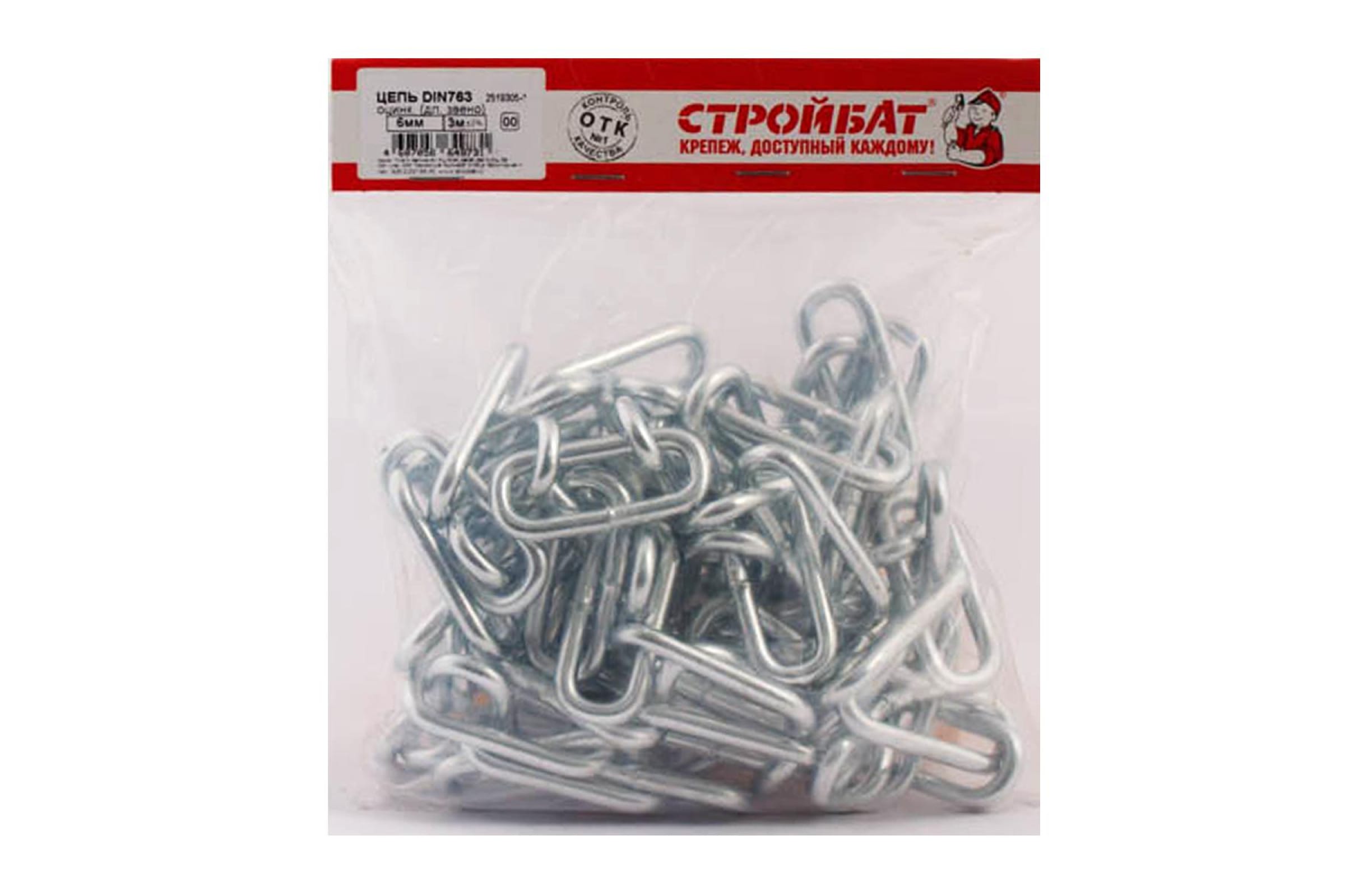 Цепь Стройбат DIN 763, длинное звено, 6 мм, белый цинк, 3 м 311200