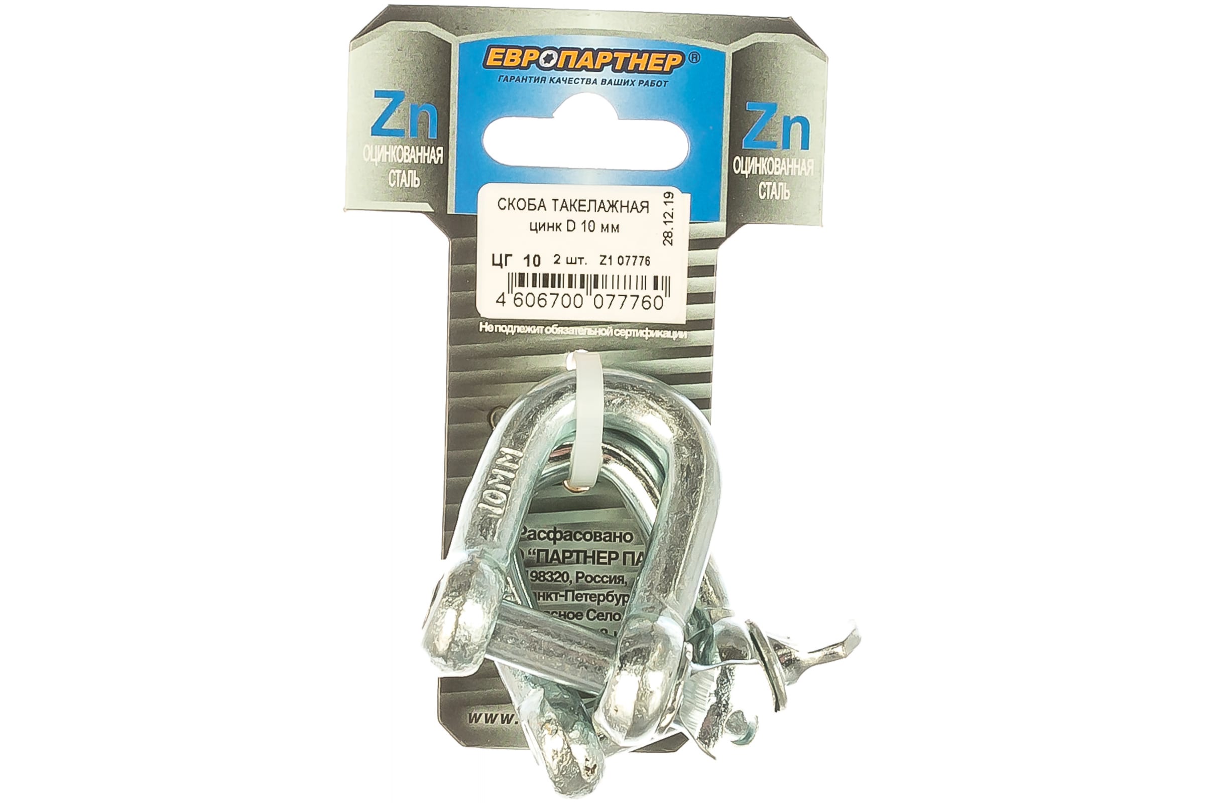 Такелажная скоба ЕВРОПАРТНЕР Zn, 10 мм, 2 шт. Z1 07776