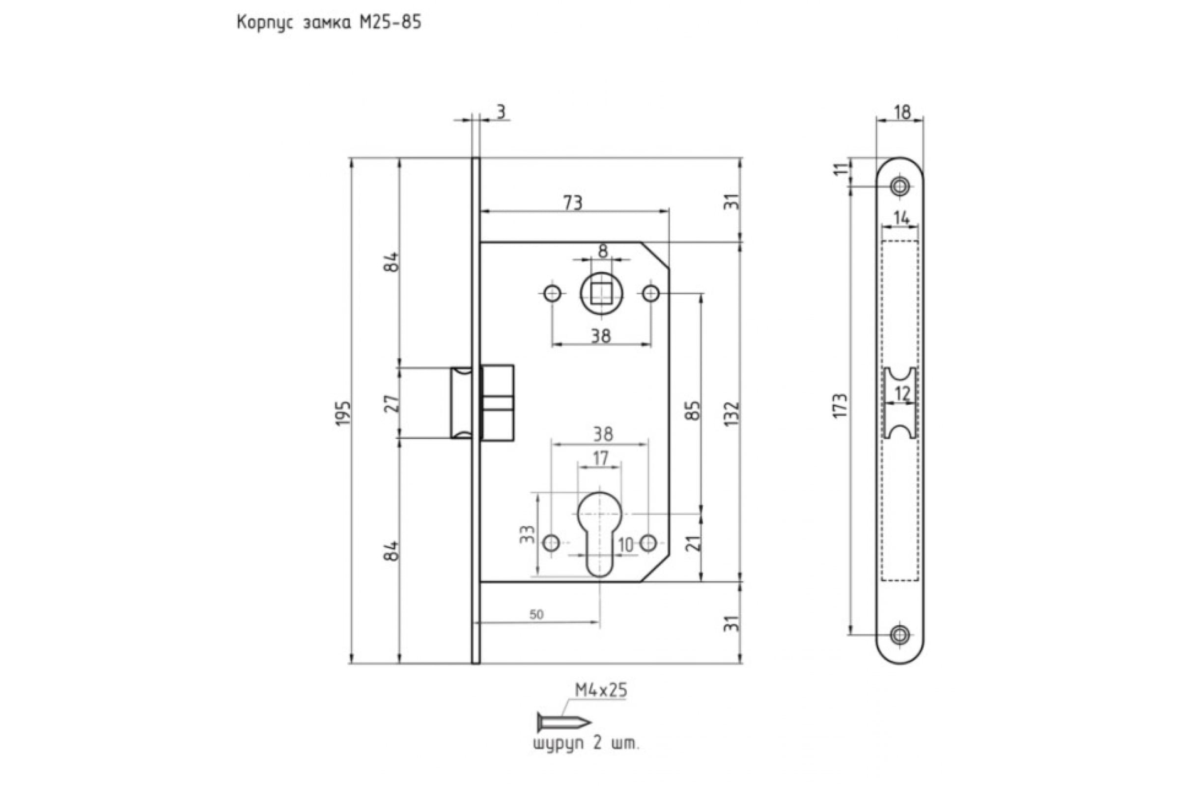 Корпус замка НОРА-М М25-85 мм ст.медь, под цилиндр 9625