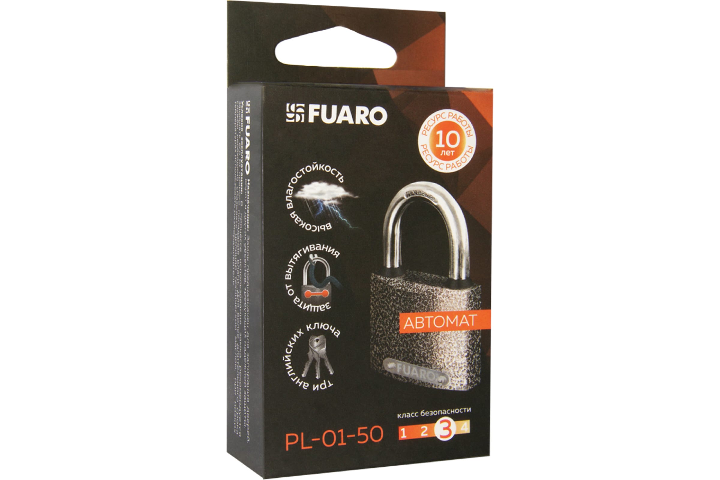 Навесной замок Fuaro PL-01-50 англ. 3 кл., коробка 42267