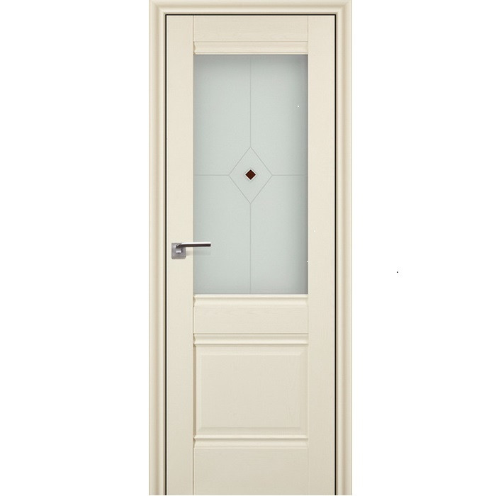 Модель ProfilDoors 2X экошпон Эшвайт с матовым стеклом Узор 2 с коричневым фьюзингом - серии Х Классика, имеет четкие геометрические формы. Она гармонично впишется в современный интерьер или интерьер в стиле хай-тек и станет прекрасным завершающим элементом дизайна в квартире или офисе. Царговая дверь включает в себя несколько элементов – раму, состоящую из верхней и нижней царги и стоевых, и филенку. В качестве филенки, или, как ее еще называют, наполнителя, используются стекло.