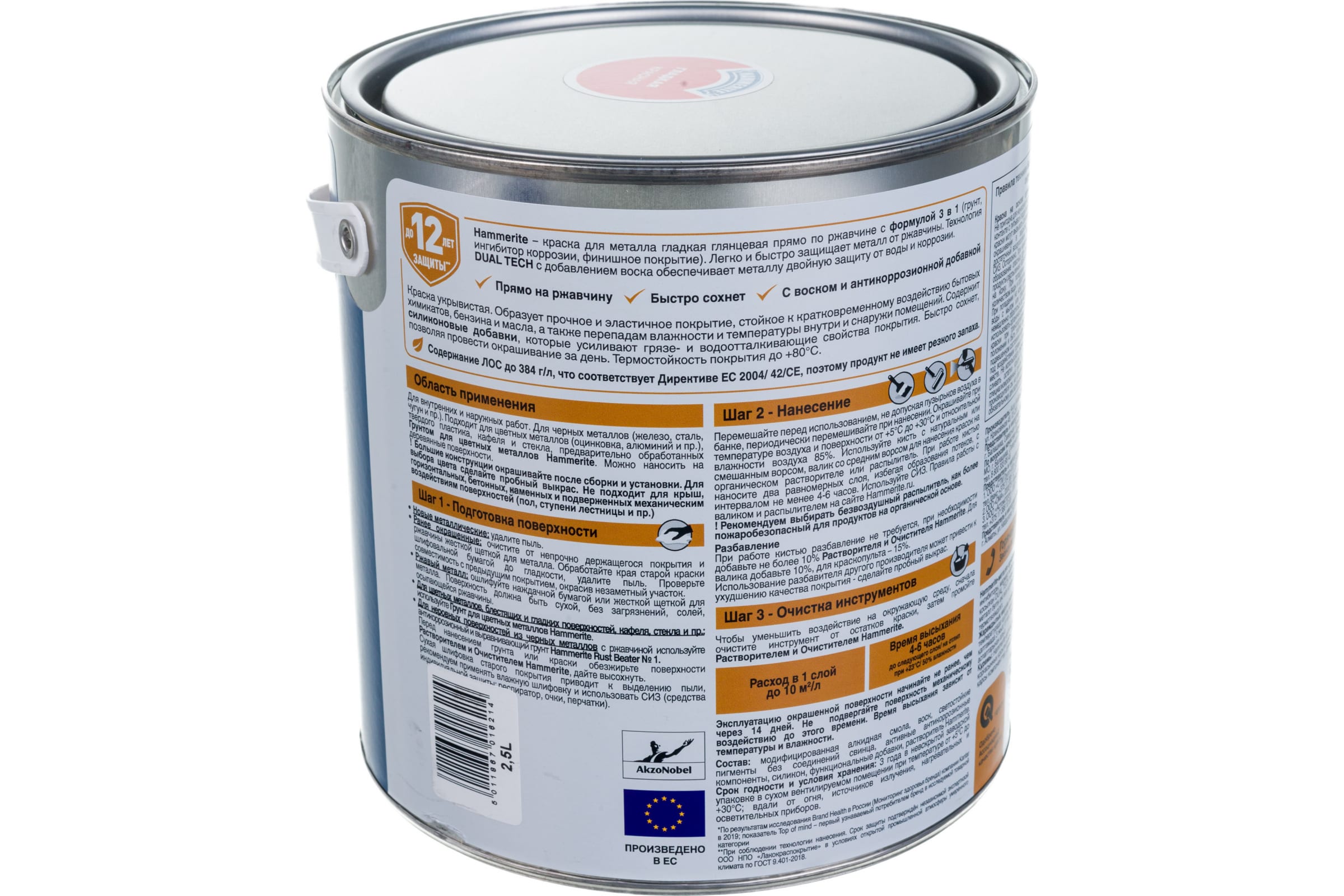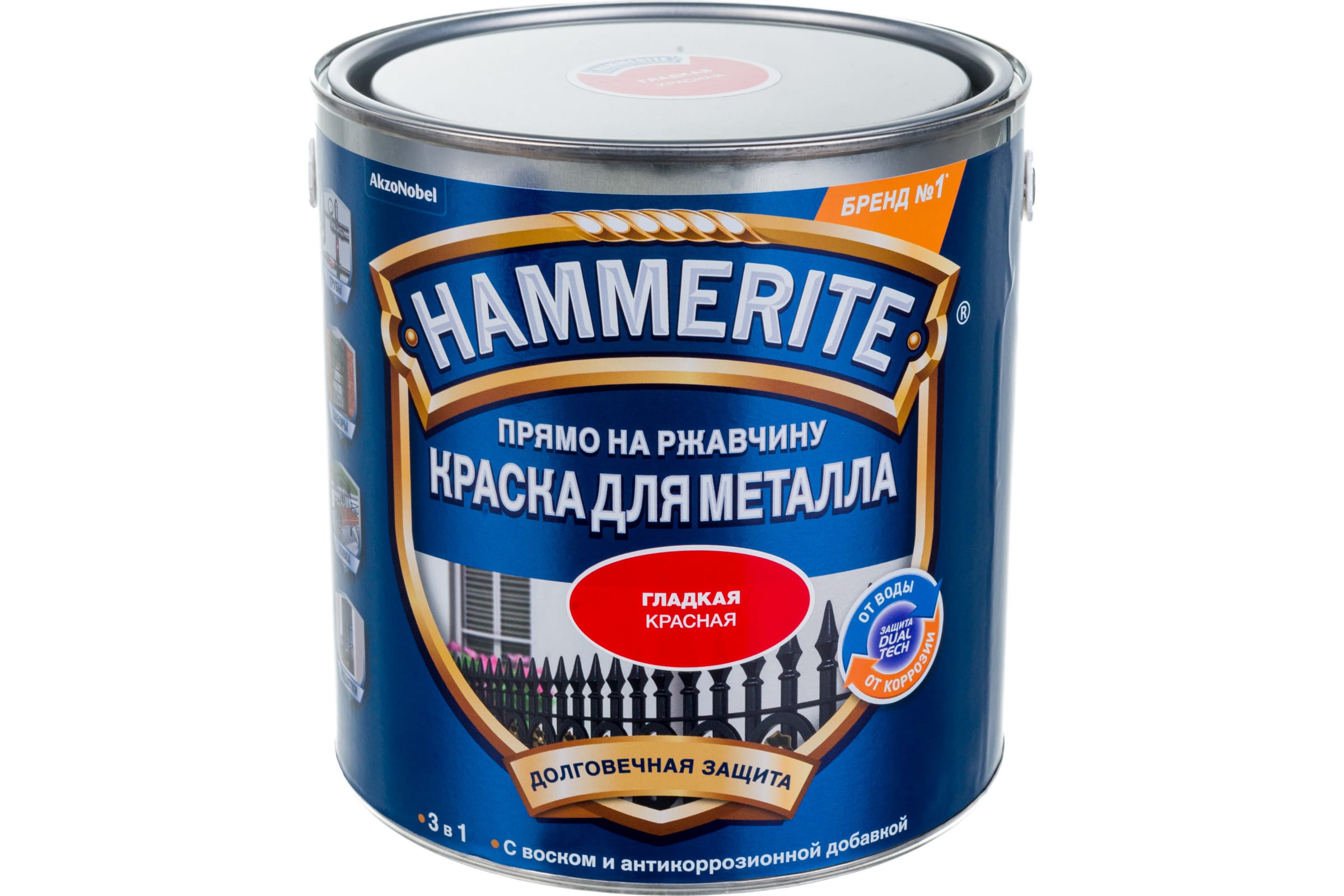 Гладкая эмаль HAMMERITE SMOOTH по ржавчине, красная, 2.5 л 5093982