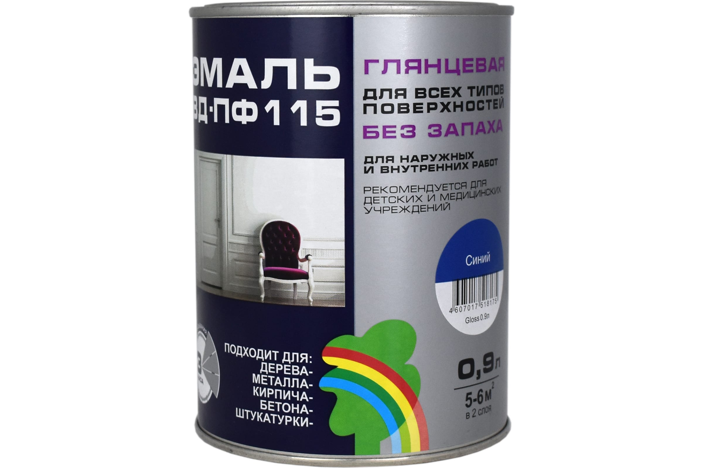 Глянцевая цветная эмаль Радуга GLOSS ВД-ПФ 115 синий, 0,9 л 143169