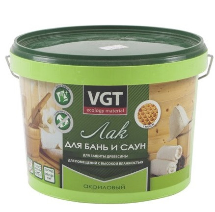 Лак по дереву акриловый VGT для бань и саун 9 кг