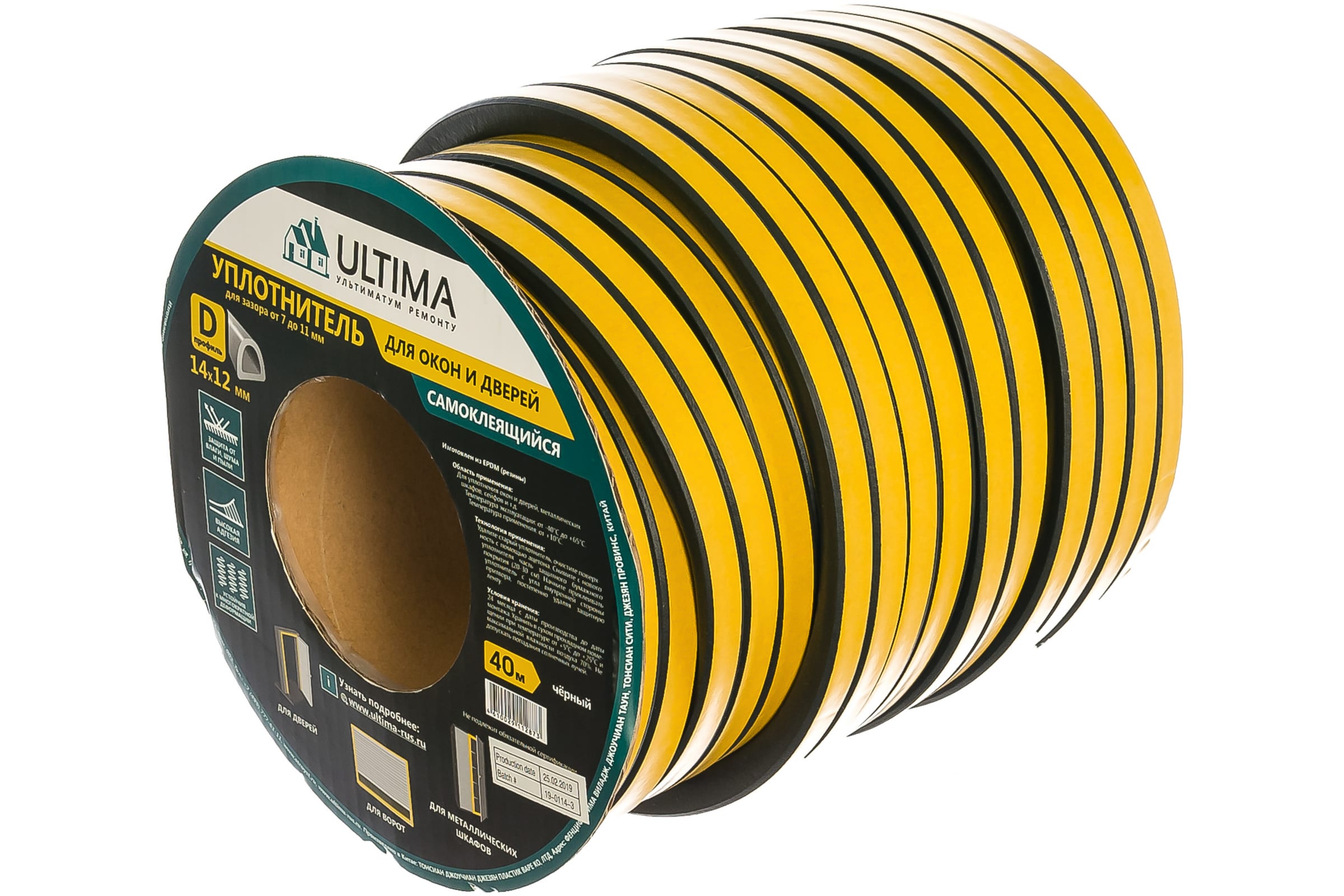 Самоклеящийся уплотнитель Ultima D 40, 14x12 мм, черный SC-55