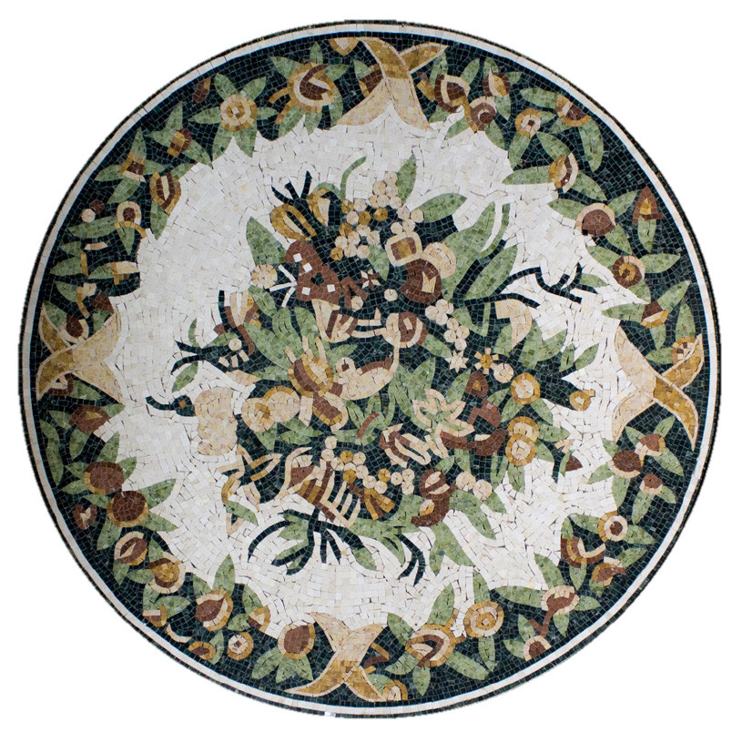 Розон Natural Art PH-20 представляет собой мозаичное панно удивительной красоты. Это декоративная картина круглой формы, выполненная из камня. Данный элемент обычно размещают в центре декорируемого помещения. Если центрировать помещение затруднительно из-за сложной геометрии, мозаичный розон размещают в том месте, которое необходимо отметить в качестве центрального. Окружать розон должно фоновое полотно из мозаики или обыкновенная напольная плитка в зависимости от постановки задачи, а по краям будут хорошо смотреться декоративные бордюры компании Natural.