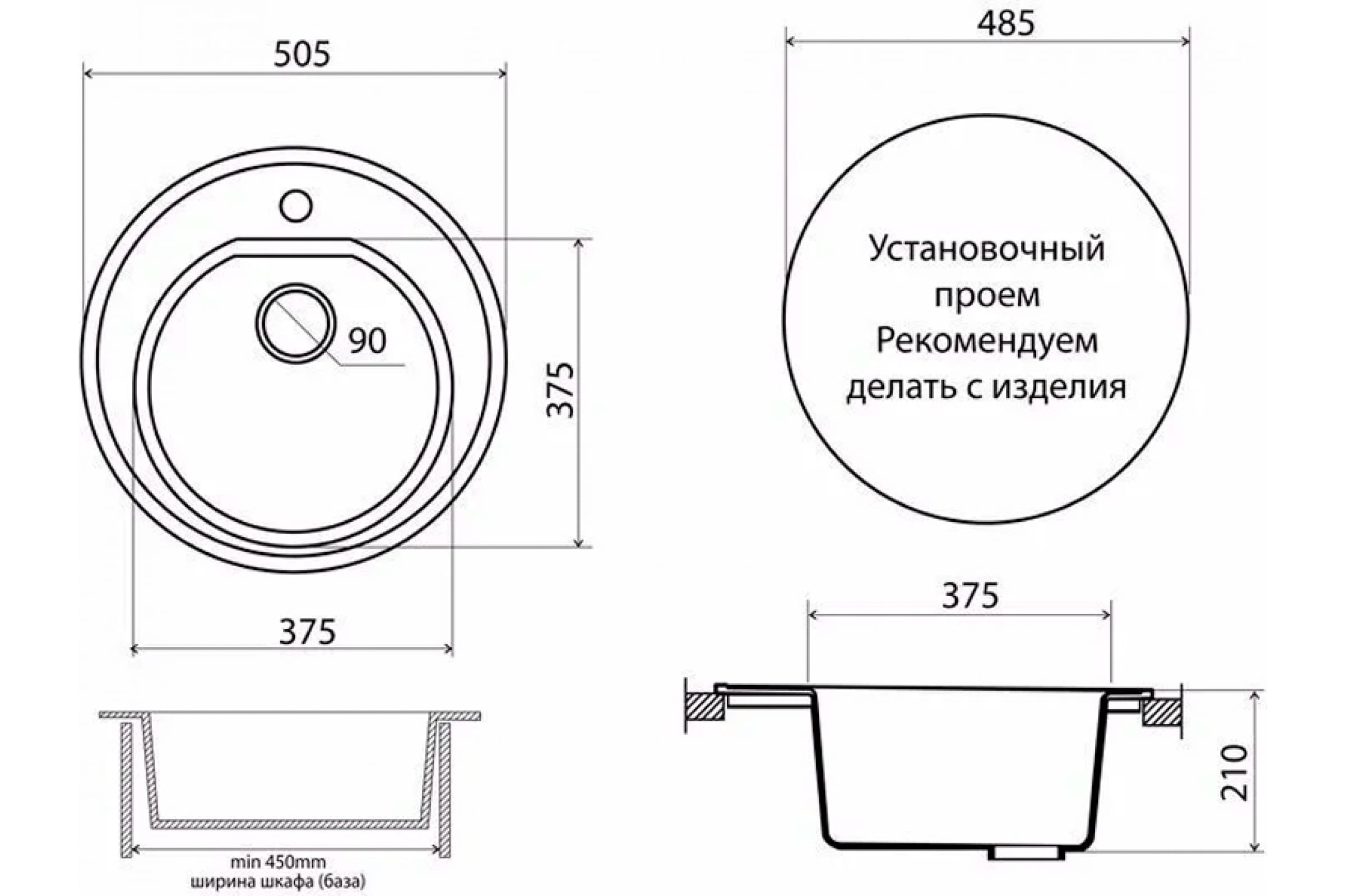 Мойка для кухни VIGRO из искусственного мрамора, (505х505х210) классическая круглая VG104 антрацит