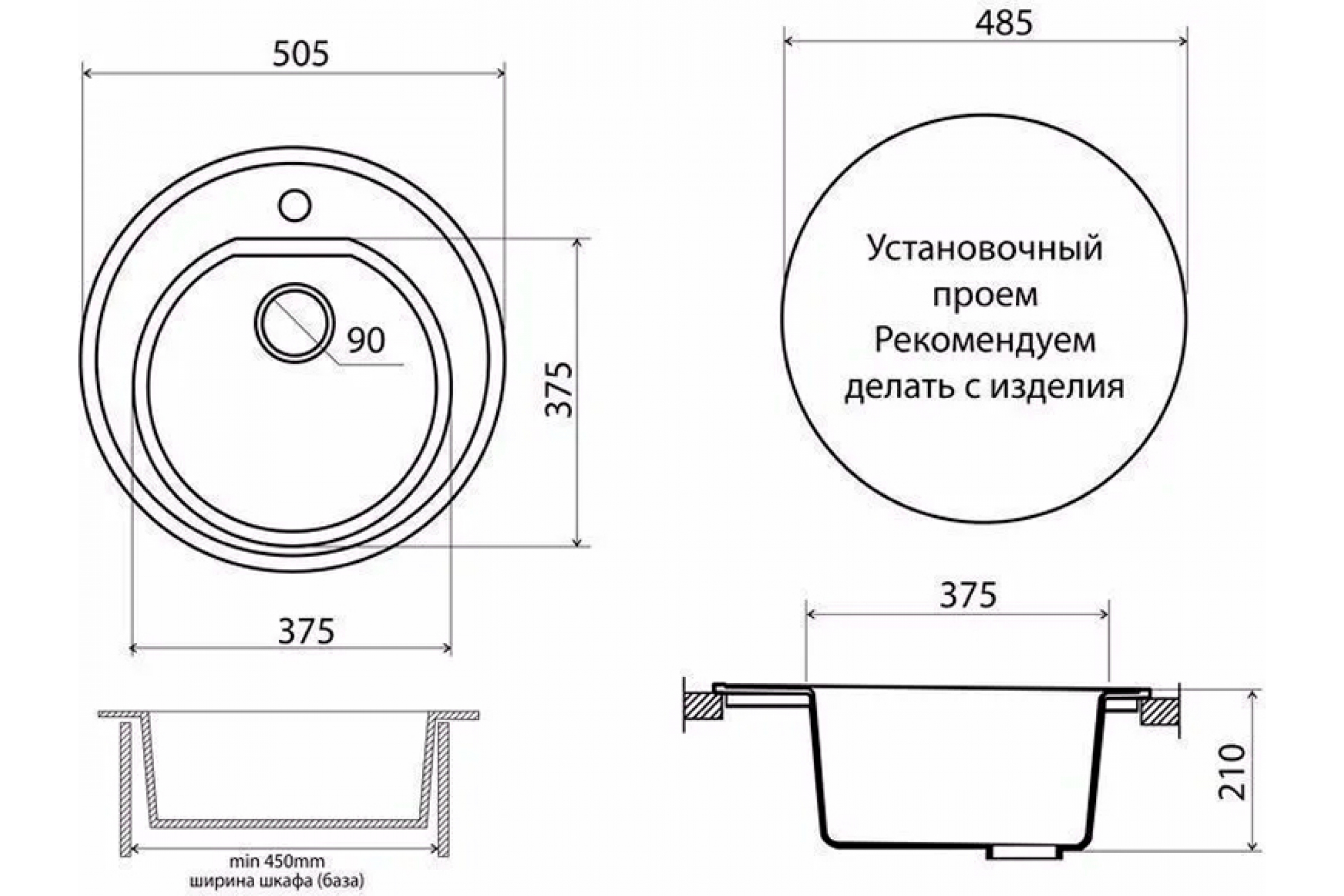 Мойка для кухни VIGRO из искусственного мрамора, (505х505х210) классическая круглая VG104 терра