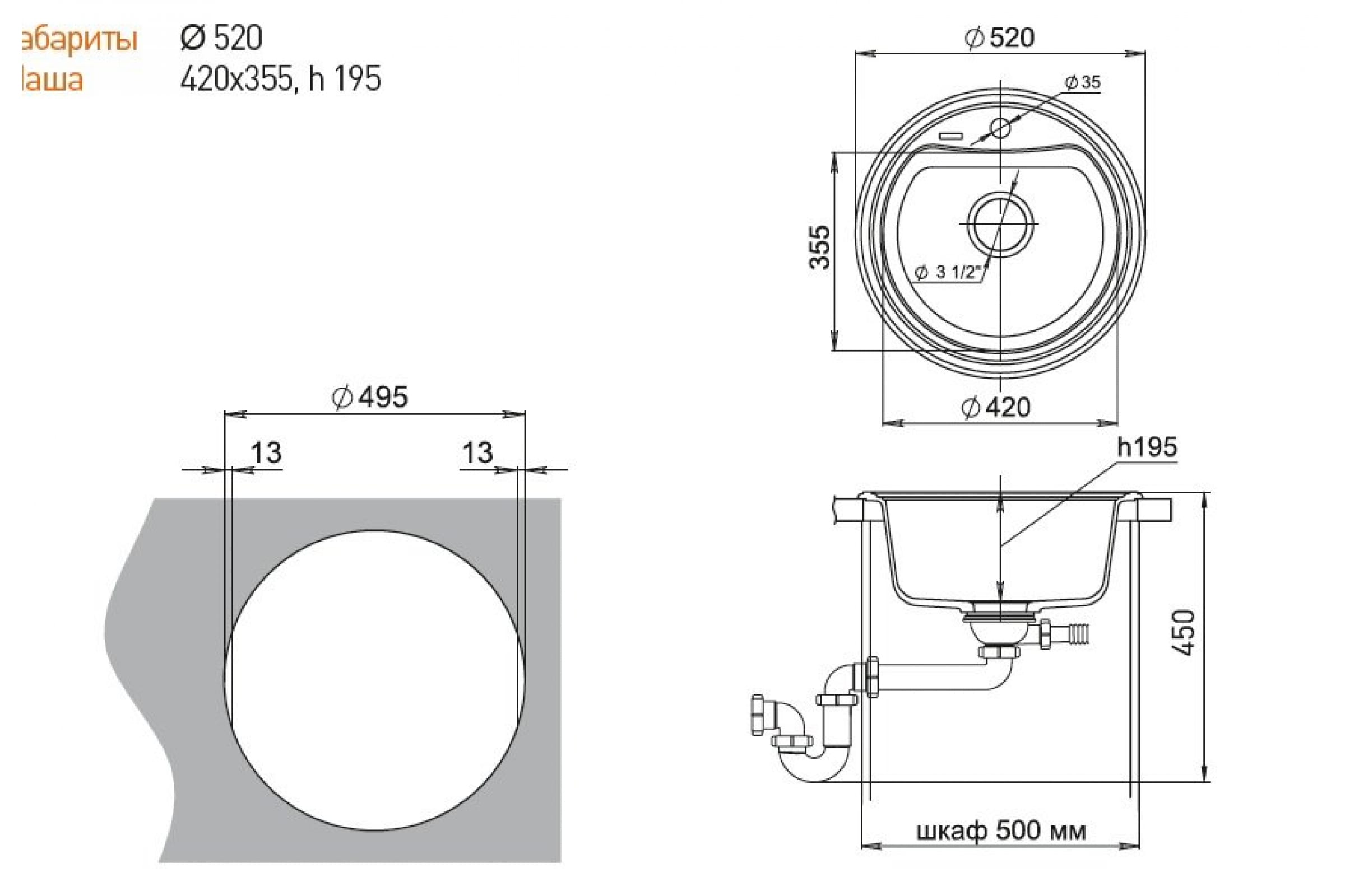 Мойка EWIGSTEIN Antik R50 кварц, 1-чаша, D-520 мм, антрацит A- R50