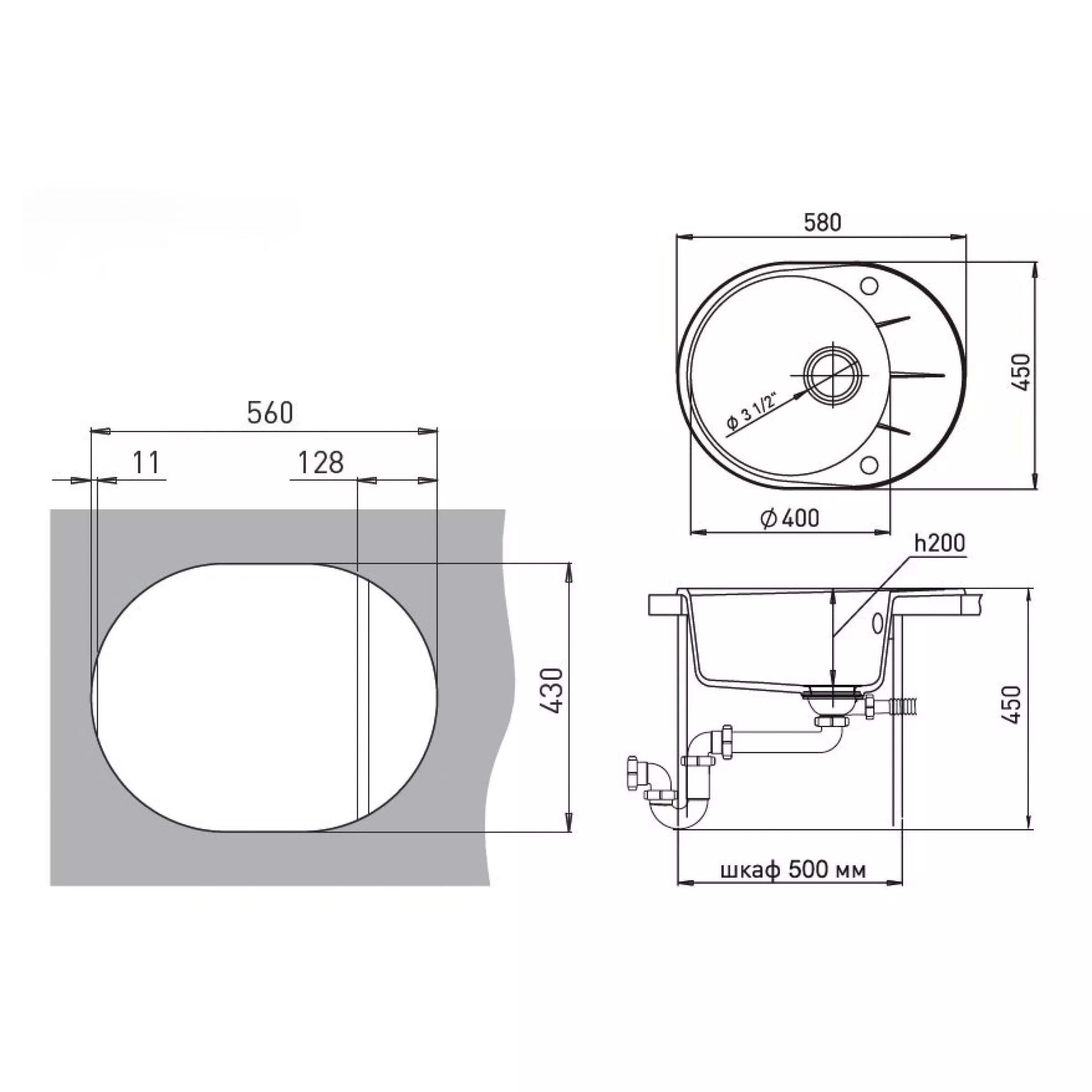 Диаметр сливного отверстия, дюйм