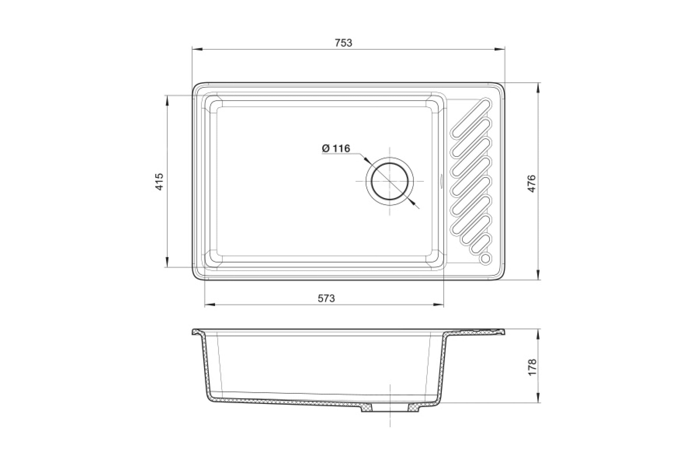 Мойка GranFest QUARZ чаша+крыло, 760х480 мм, серый 51