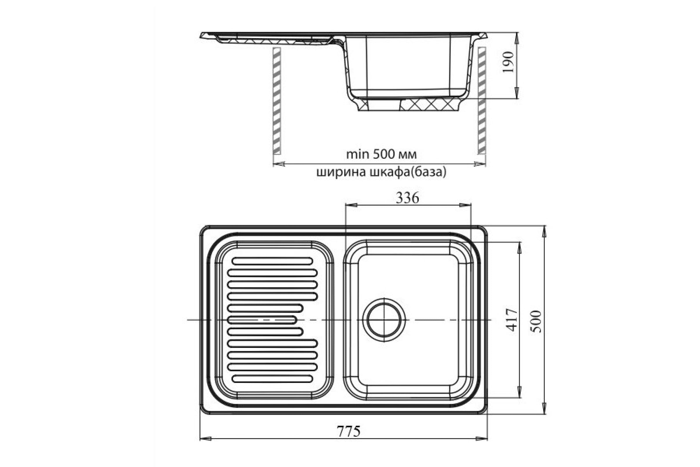 Мойка GRANFEST STANDART GF-S--780L чаша с крылом, 775х500 мм, серый S-780 L сер