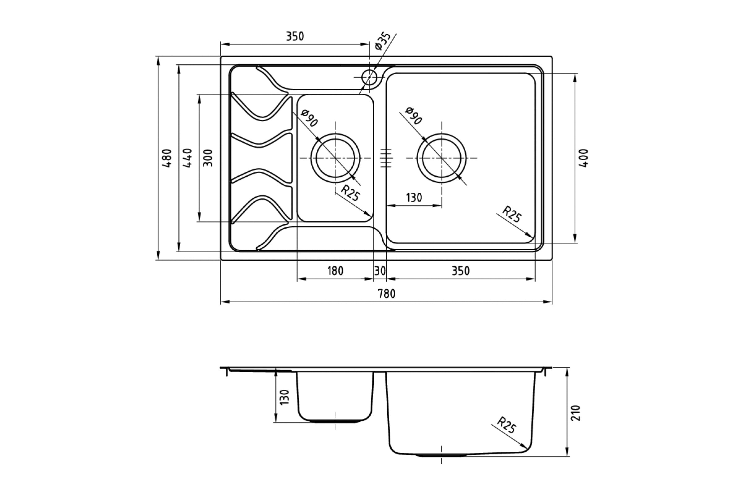 Мойка IDDIS Reeva S, нерж. сталь, шелк, 1 1/2, чаша справа, 780*480, ID REE78SZi77