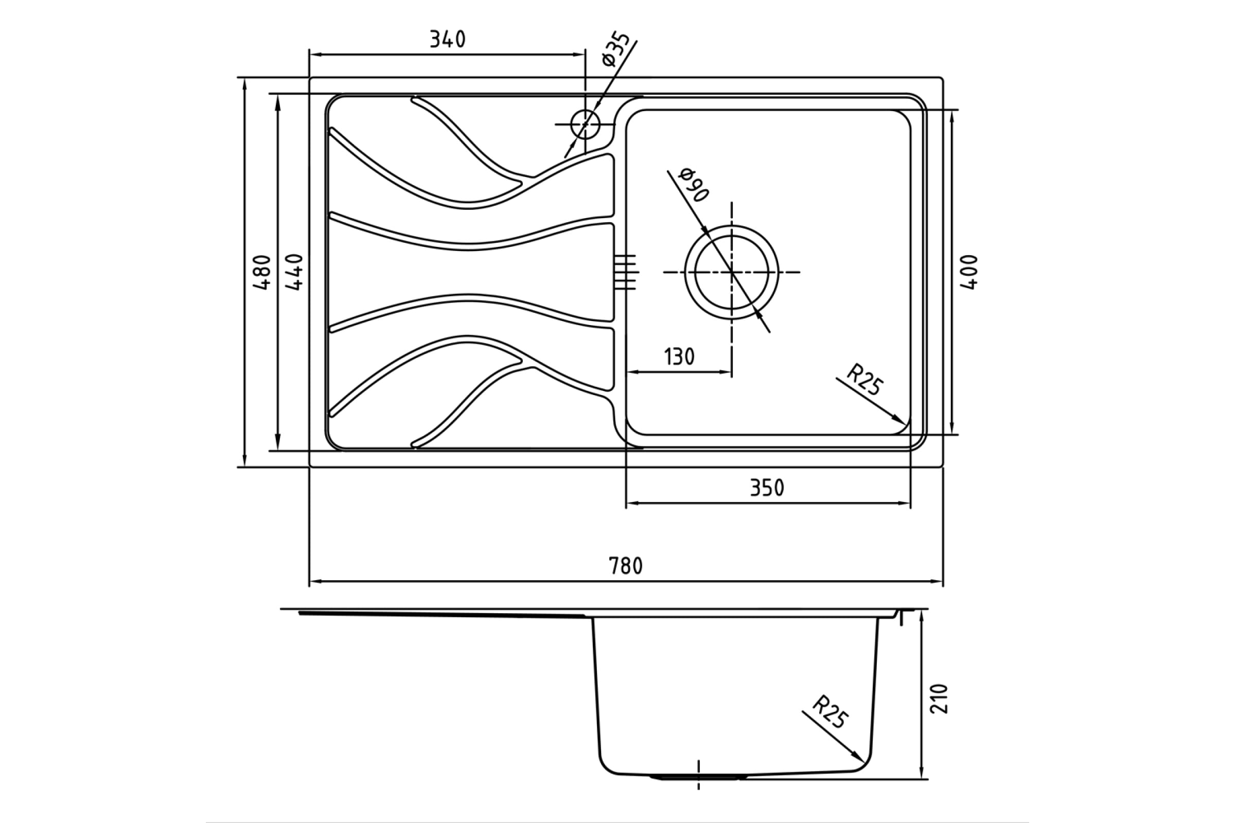 Мойка IDDIS Reeva S, нерж. сталь, шелк, чаша справа, 780*480, ID REE78SRi77