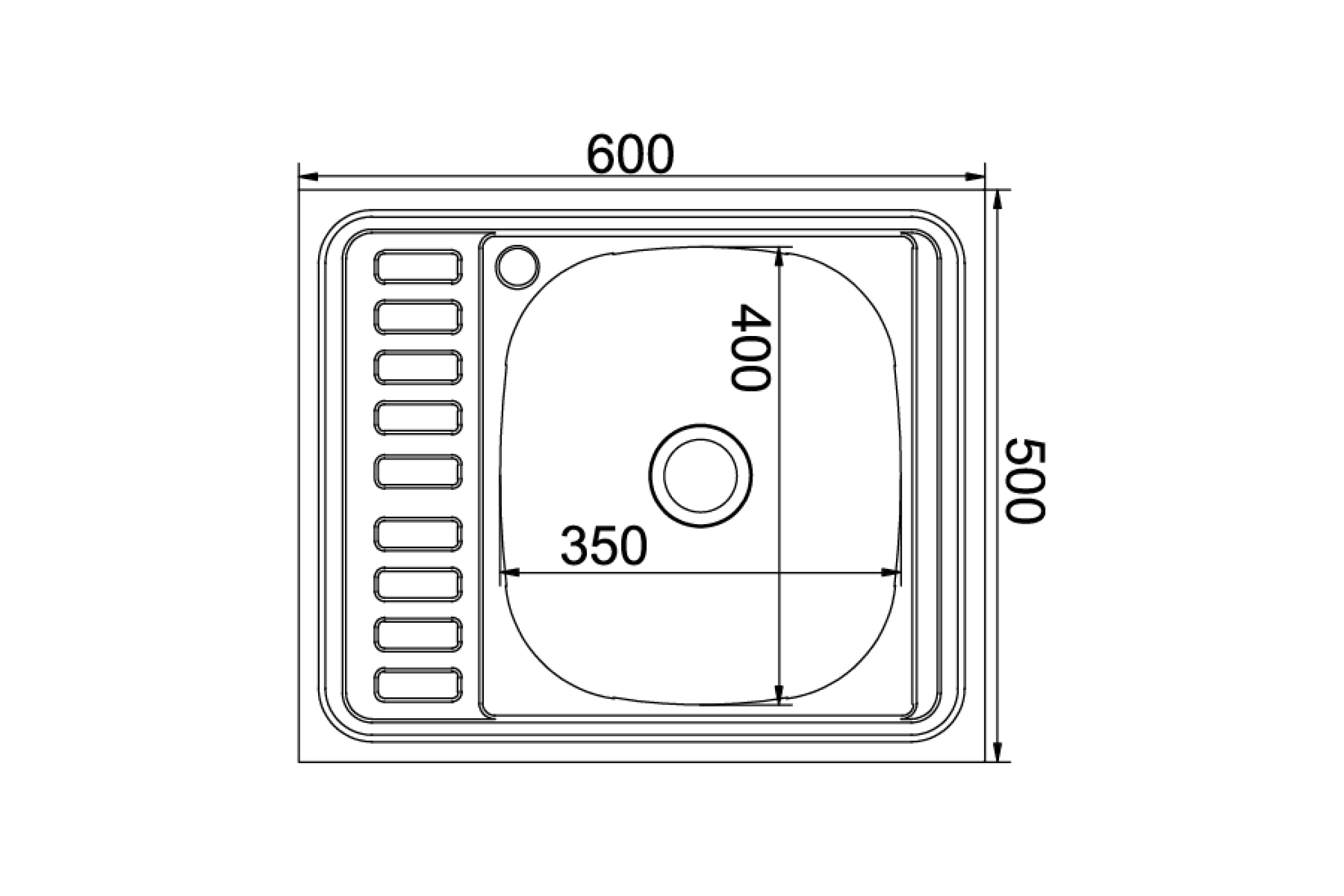 Мойка mixline 50х60х16 см, 0.6, правый выпуск 3 1/2, с сифоном 538193
