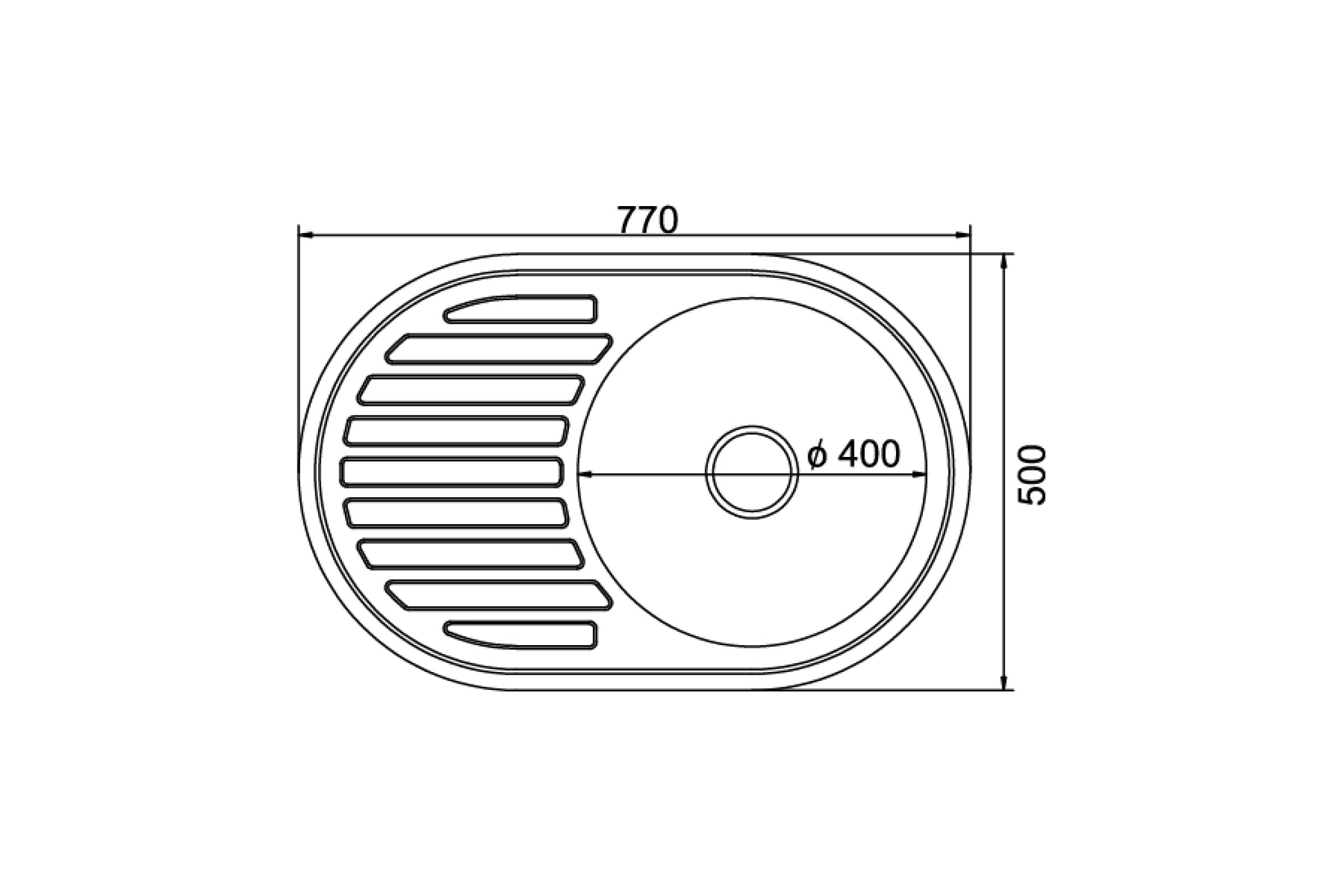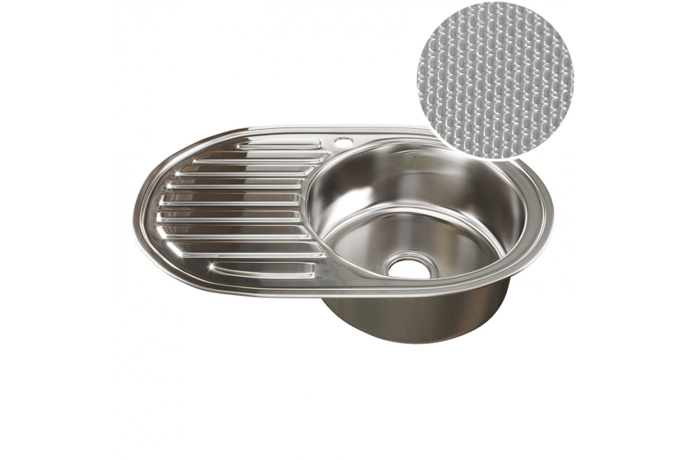 Мойка mixline овальная, 50х77х18 см, 0.8, правый выпуск 3 1/2, с сифоном, декор 532305