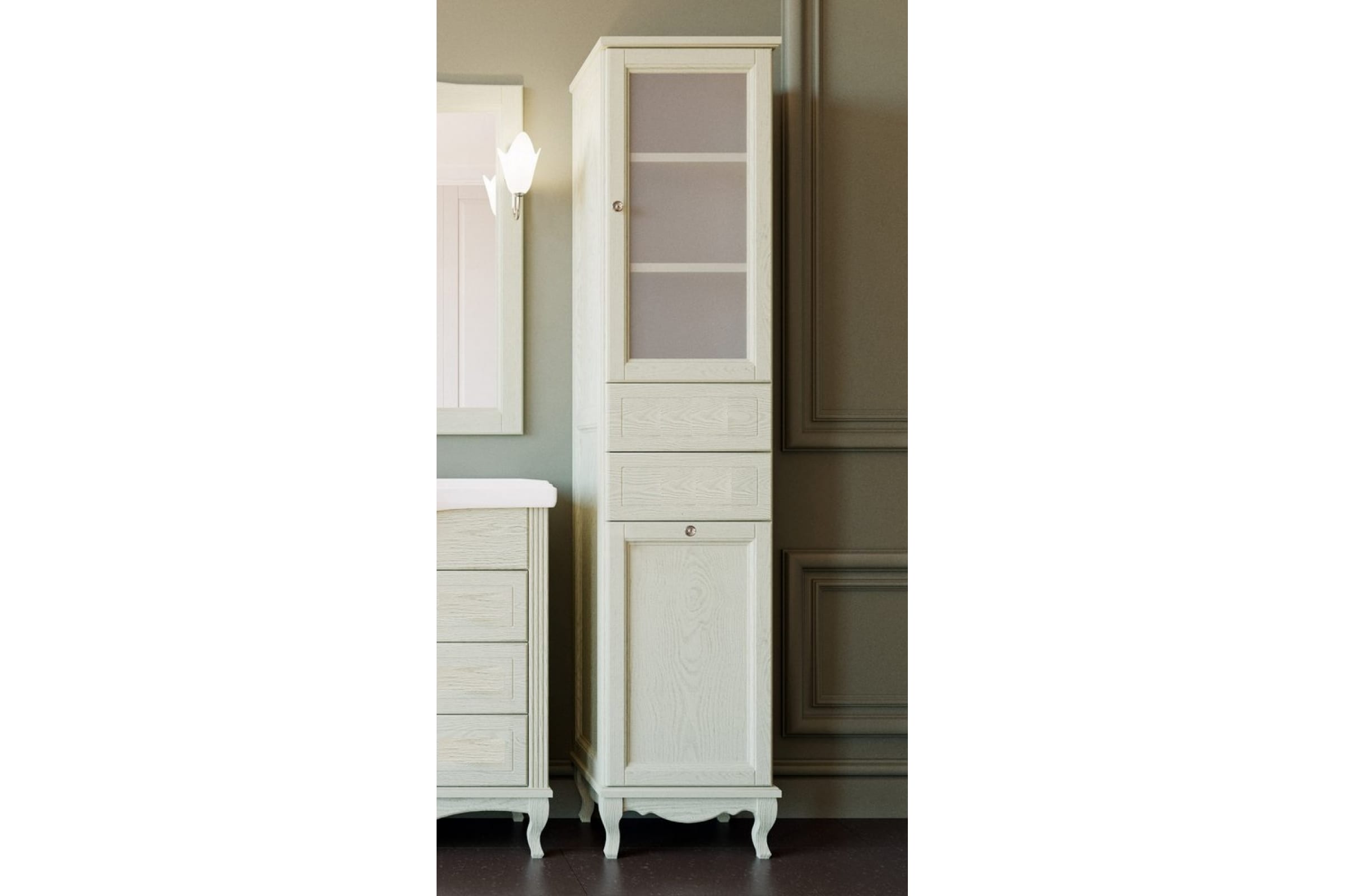 Колонна ValenHouse ЭЛЛИНА-400R слоновая кость, корзина, ясень ручки хром E40_КСRКХ