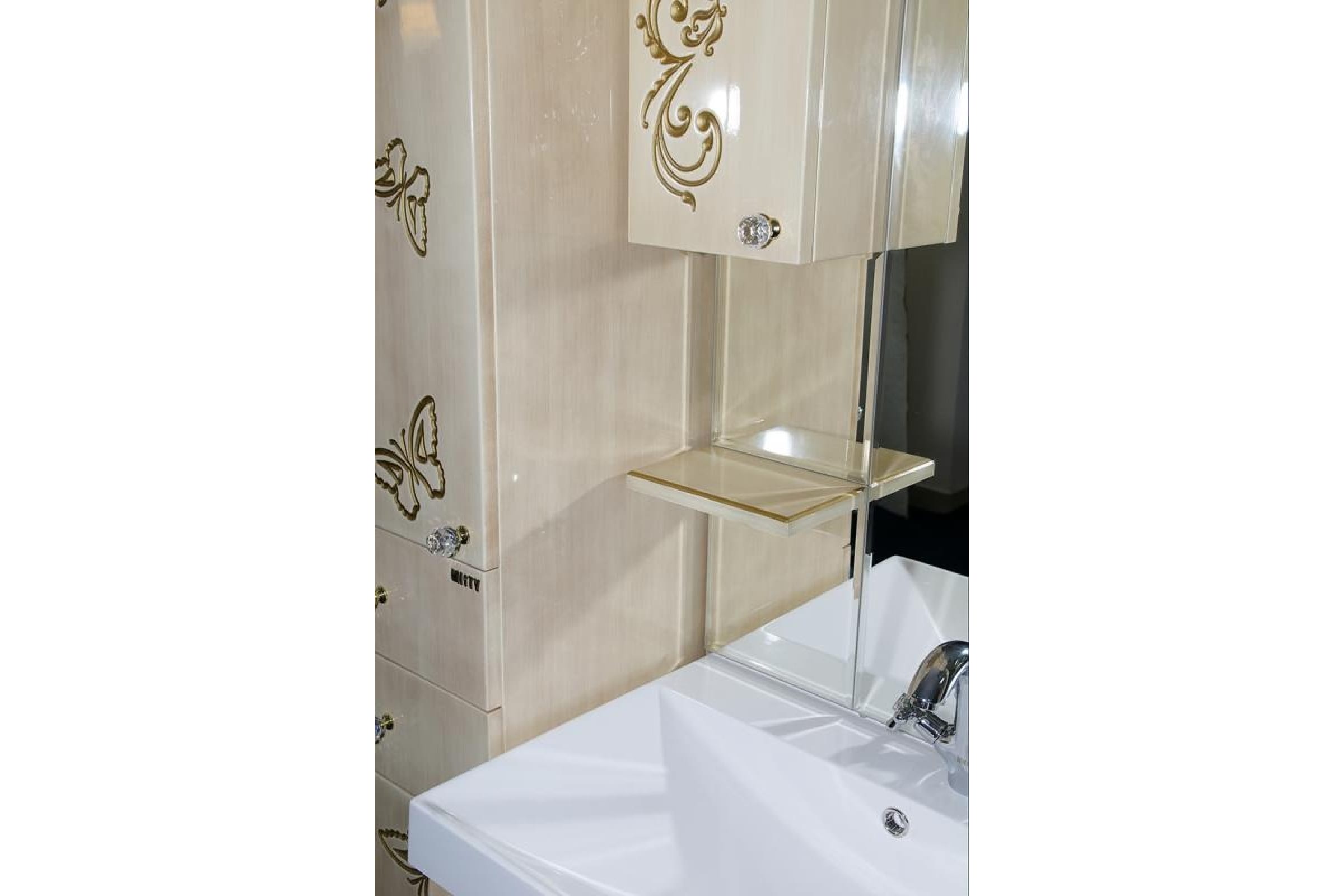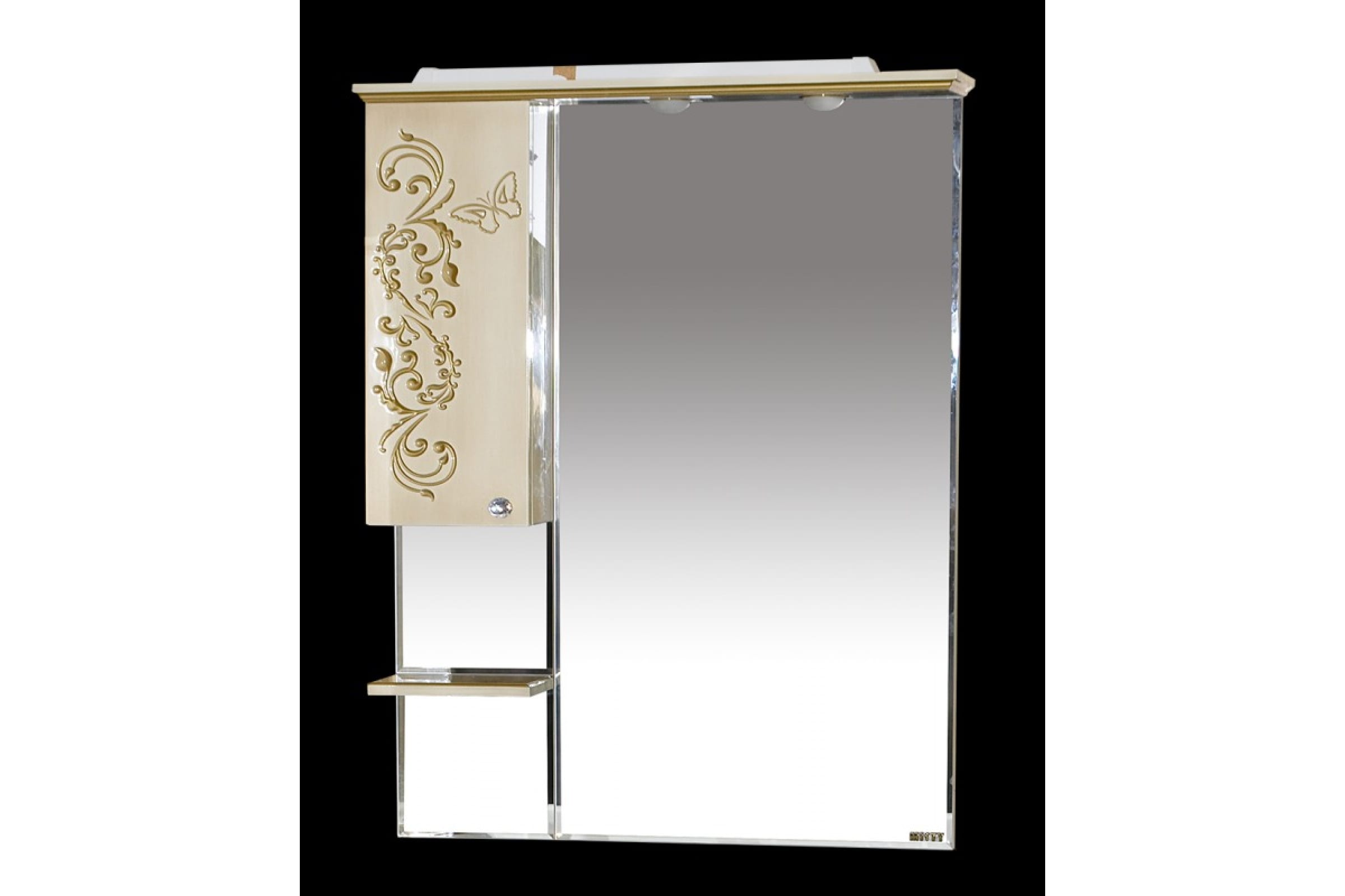 Зеркальный шкаф Misty Бабочка-90 левый, бежевый, патина Л-Баб04090-033СвЛ