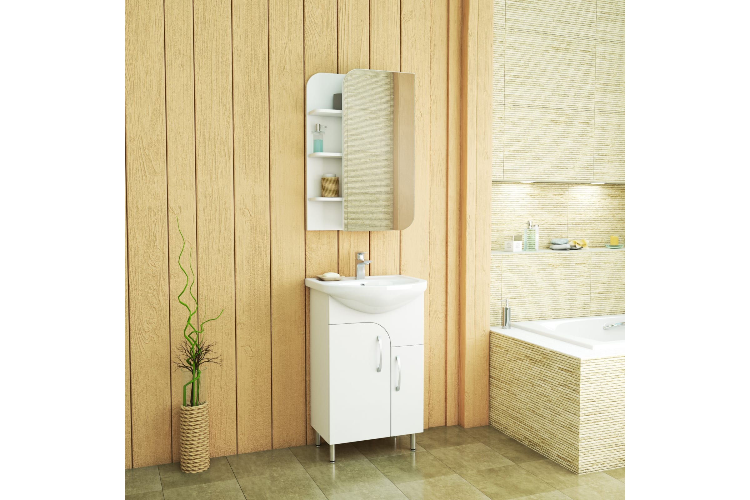 Зеркало-шкаф Uncoria Лина 50 см полки справа белое 65018