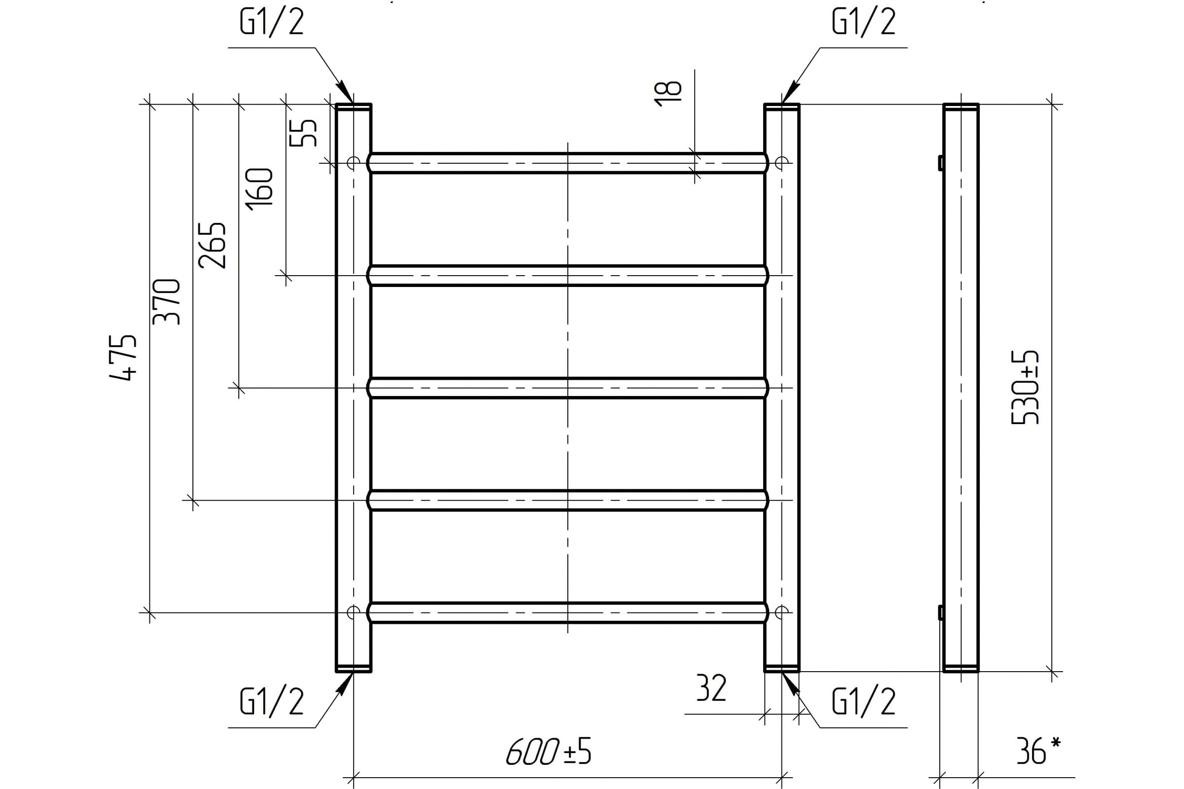 Водяной полотенцесушитель ТЕРА Классика 600x600 ПСБ-08-12