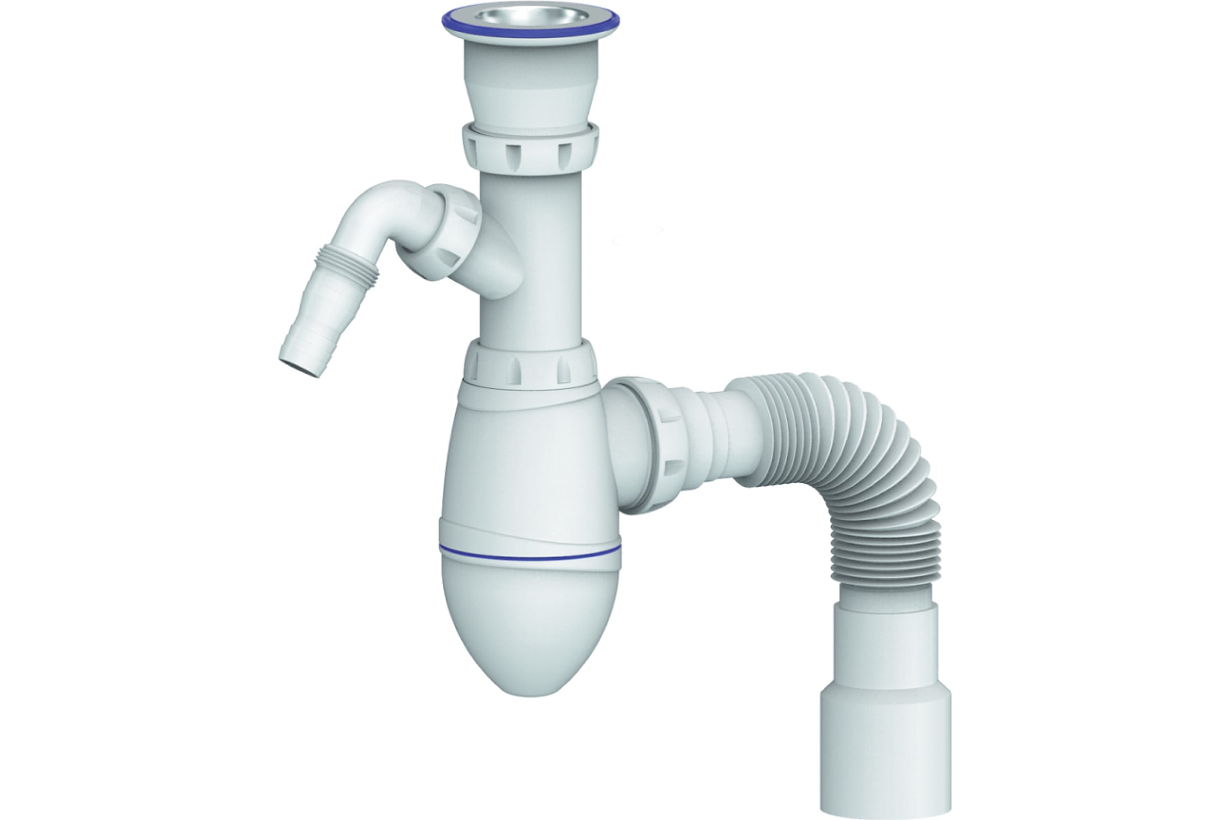 Сифон для умывальника Unicorn 1.1/2"х40, нержавеющий выпуск, отвод для стиральной машины, винт 80мм, с универсальной гибкой трубой, 40х40/50 A320V ИС.110314