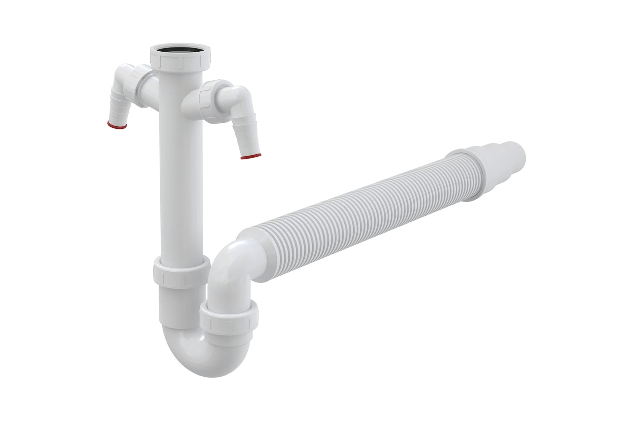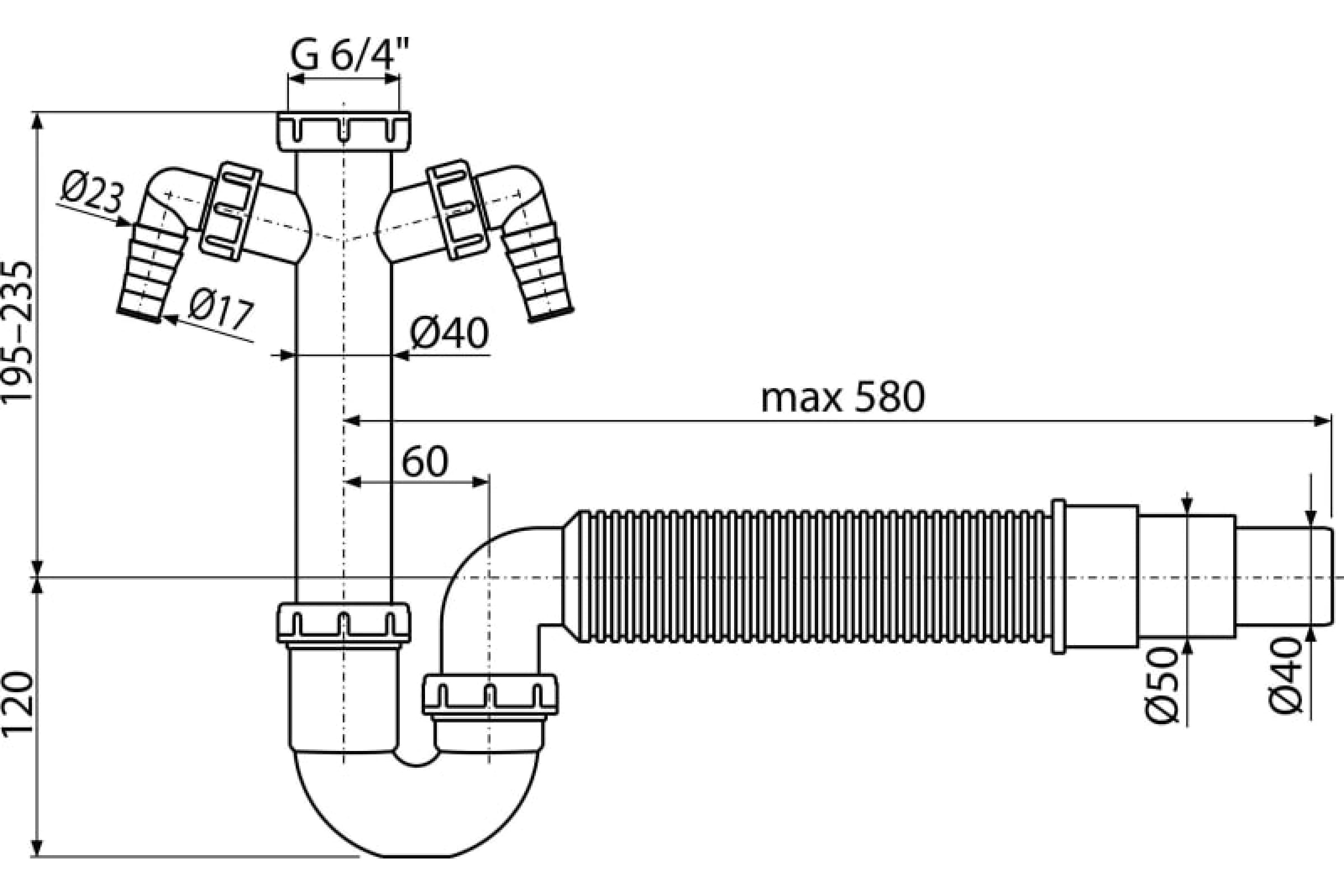 Трубчатый сифон Alca Plast с накидной гайкой 1 1/2" с двумя штуцерами и гофрой A84-DN50/40