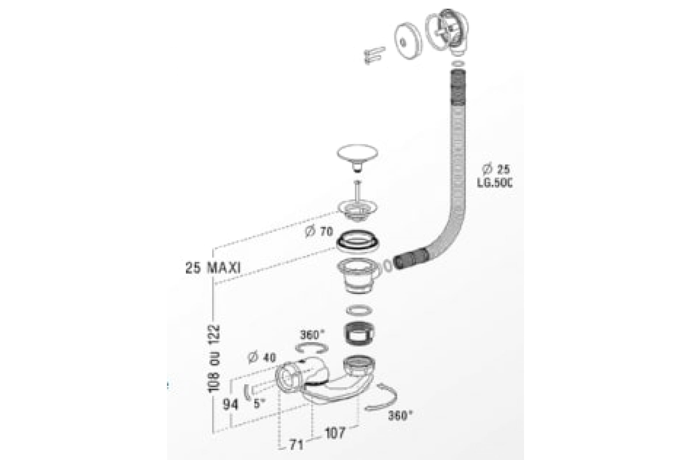 Слив-перелив для ванны Nicoll 650 мм, автоматический, слив D40 B620P-0203566