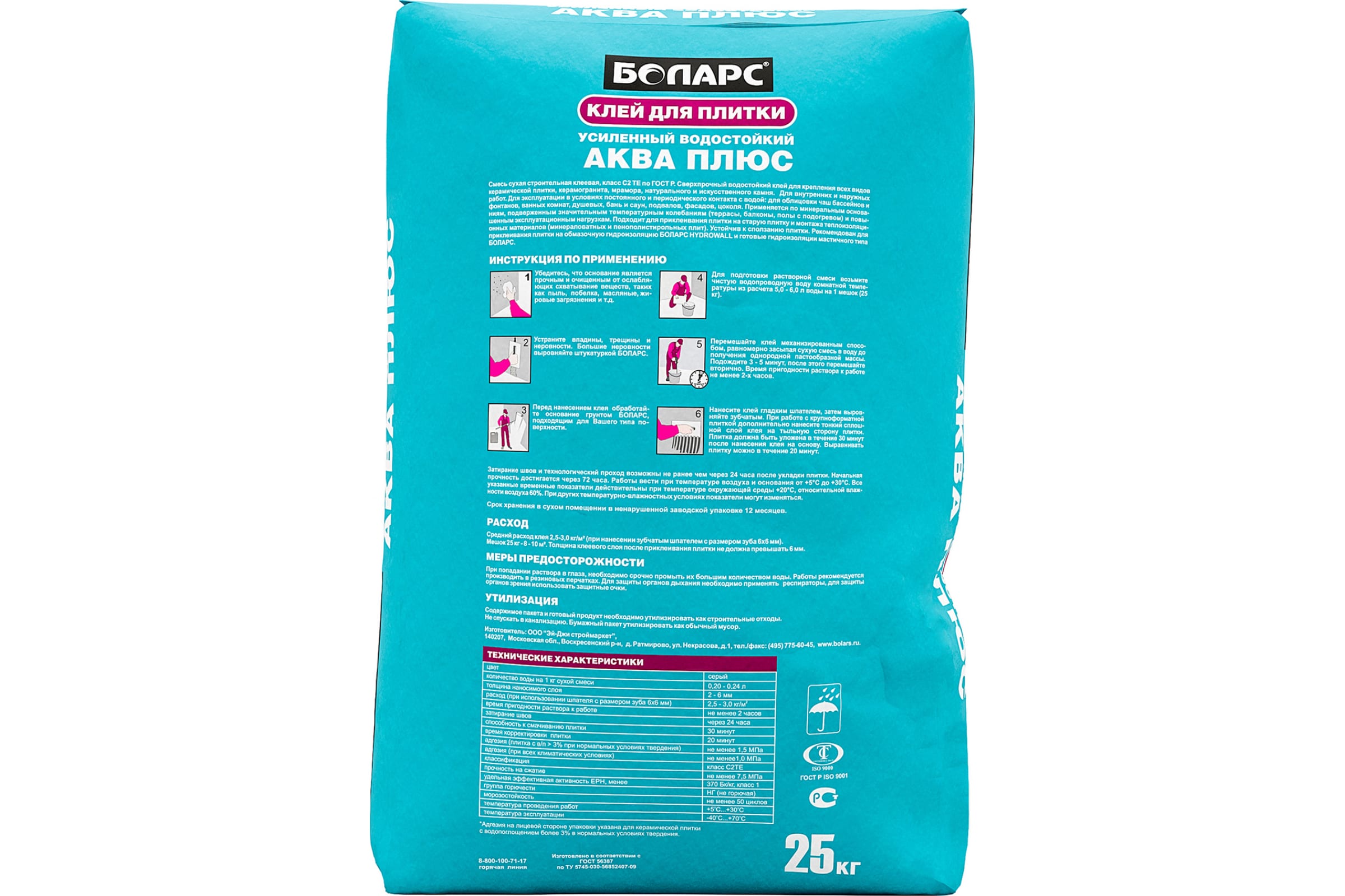 Клей для плитки БОЛАРС АКВА ПЛЮС 25 кг 00000003735
